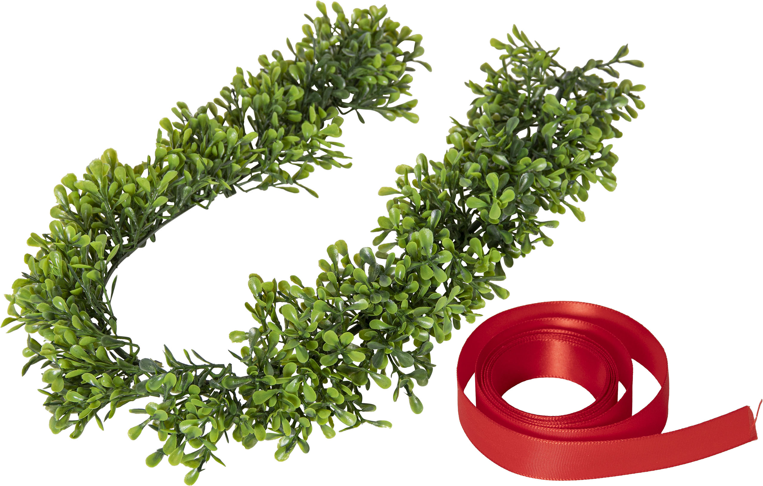 Vihreä 70 cm puolukanvarpuköynnös, joka sopii esimerkiksi Lucia-kruunun koristeeksi, pöytäkattauksiin tai kransseihin. Pakkaus sisältää myös 2 metriä pitkän punaisen nauhan.
