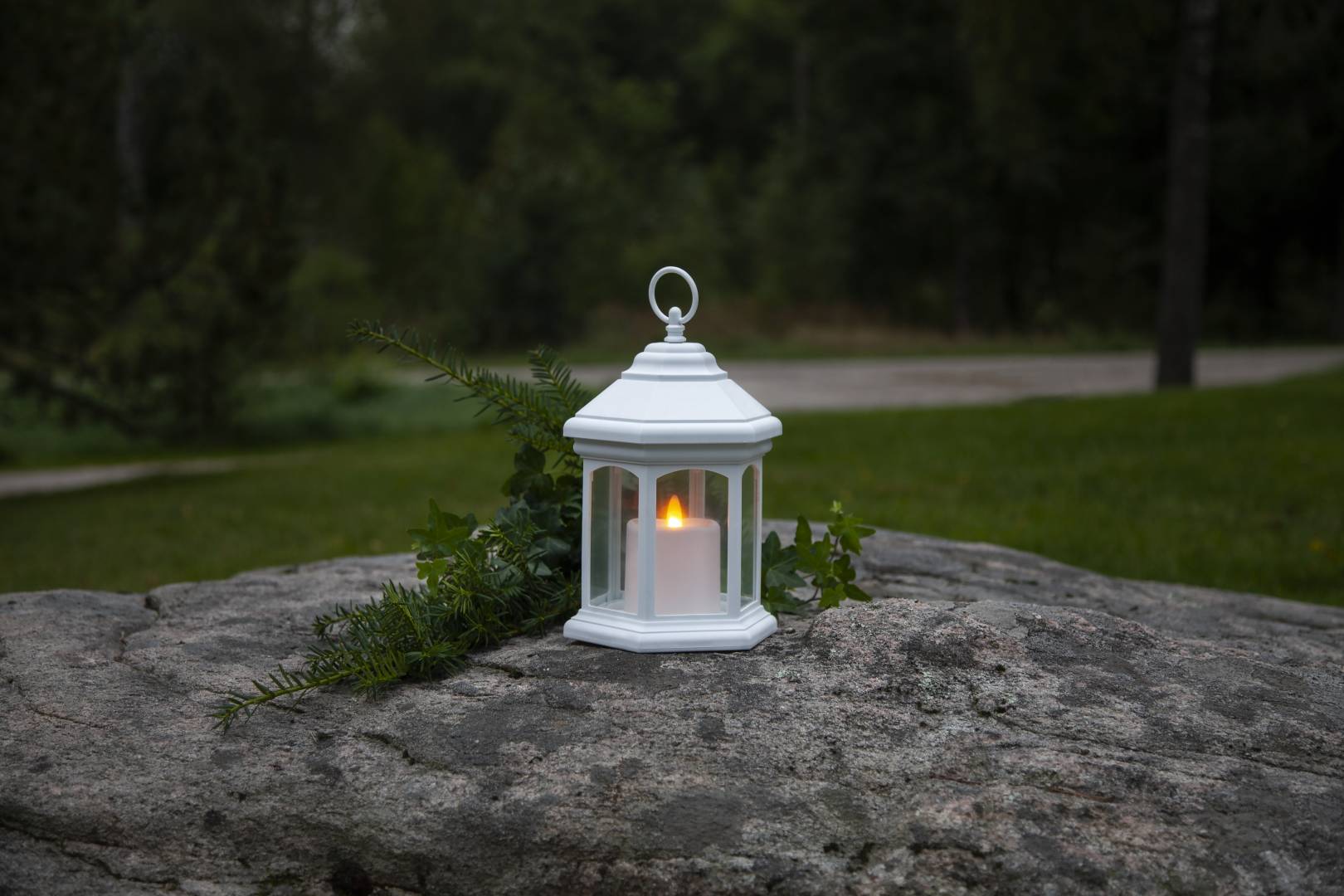 Ulko- ja sisäkäyttöön sopiva lyhty keltaisella valolla. Sopii niin kotiin kuin