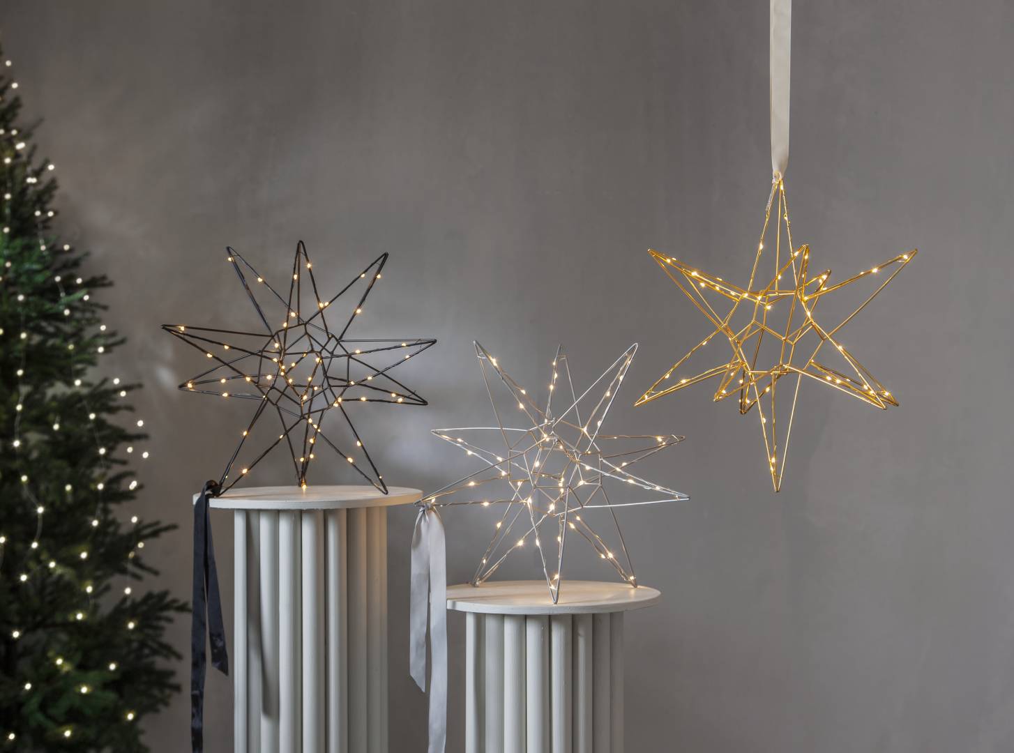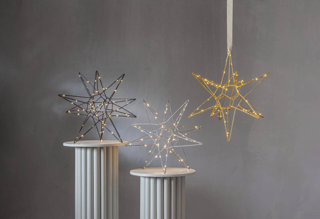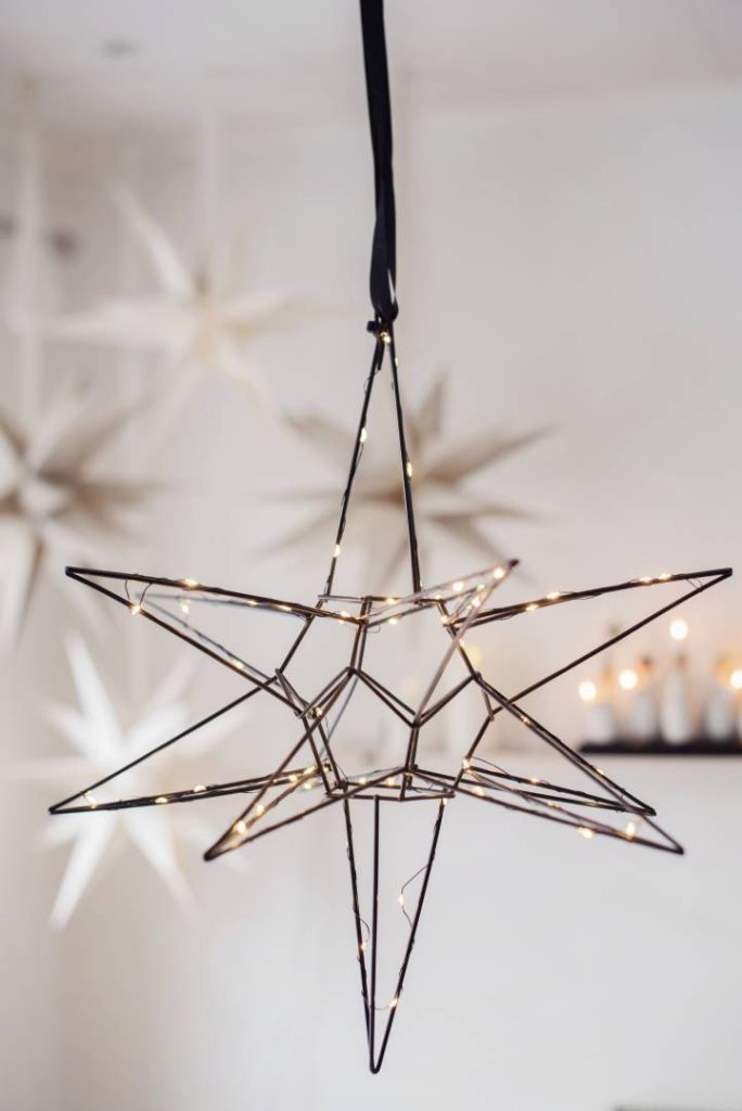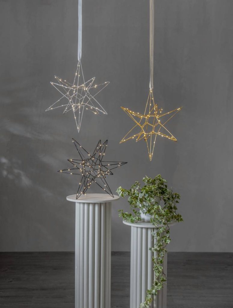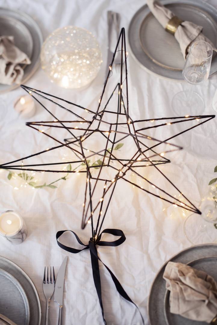 Kaunis kolmiulotteinen musta metallitähti sisäkäyttöön. Tähdessä loistaa 60 lämpimän valkoista LED-valoa. Kaunis koriste esimerkiksi ikkunaan tai vaikka lipaston päällä. Sopii tunnelmavaloksi kaikkina pimeinä talvikuukausina.