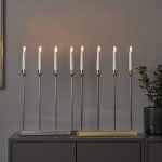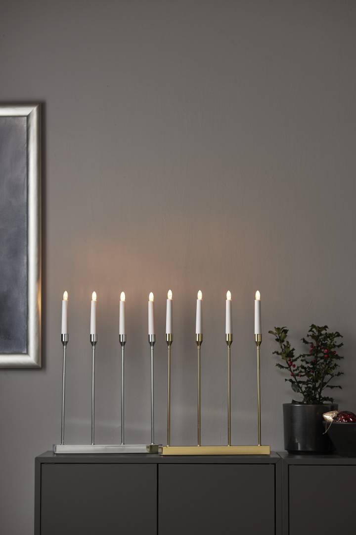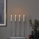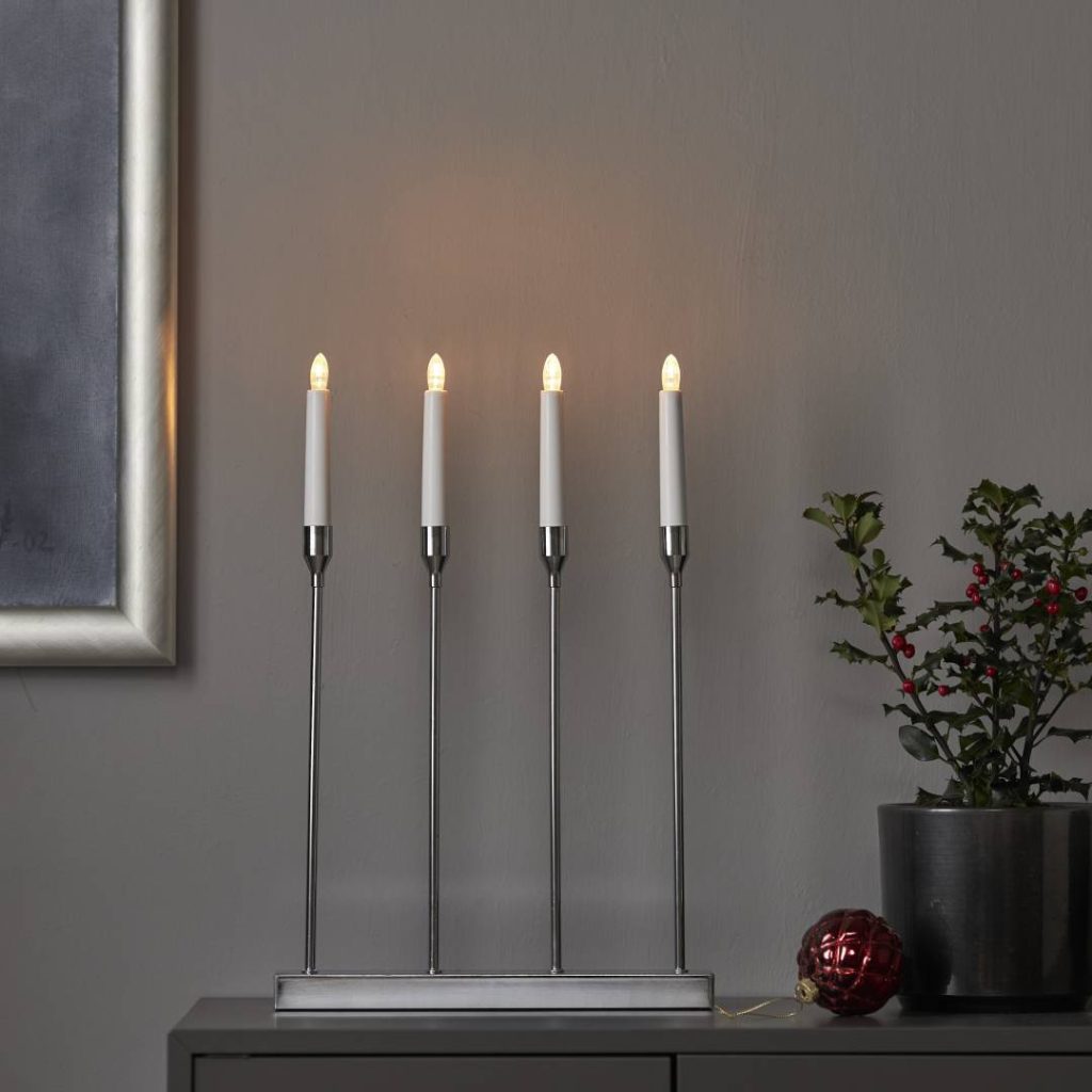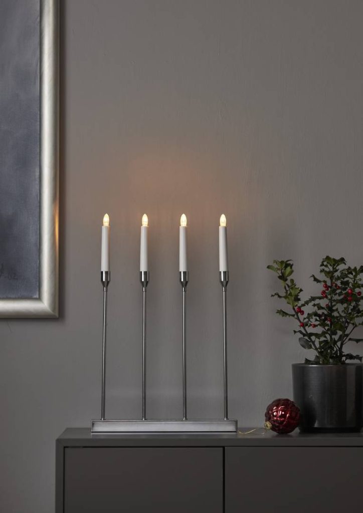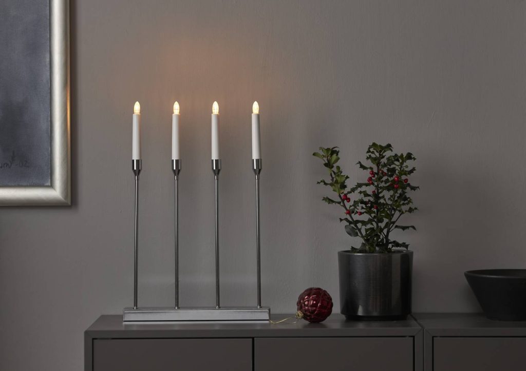 Paristokäyttöinen metallikynttelikkö jouluajan koristeeksi.