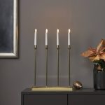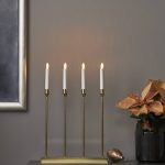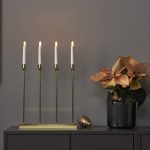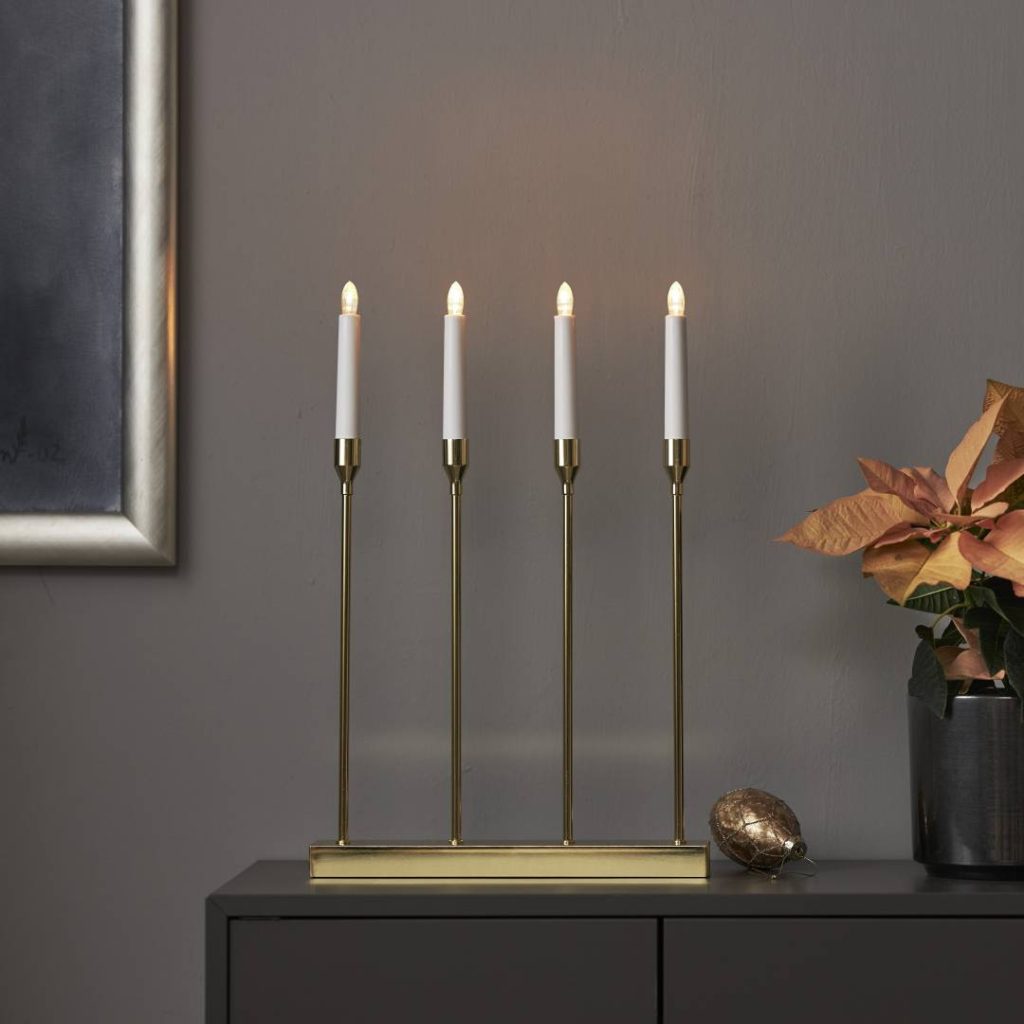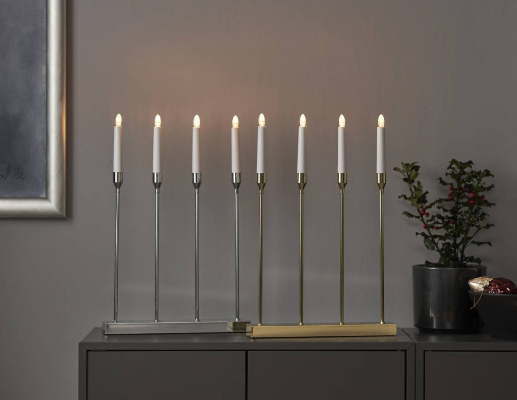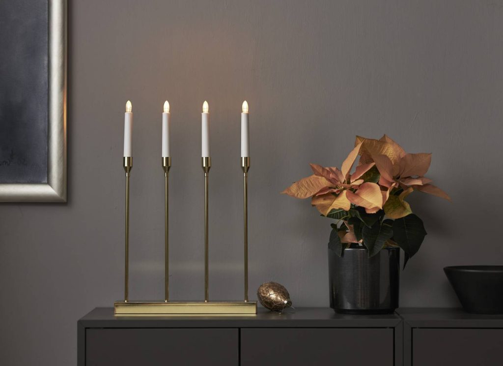 Paristokäyttöinen metallikynttelikkö jouluajan koristeeksi.