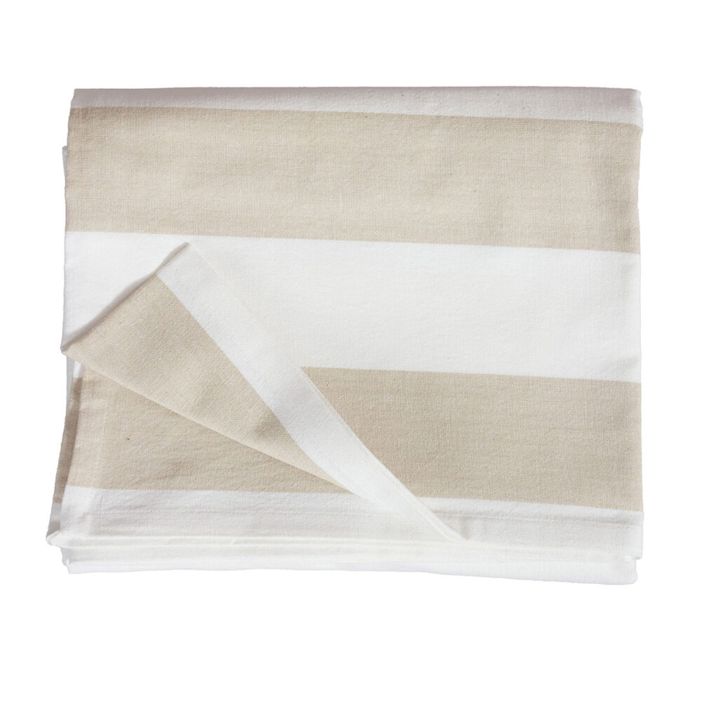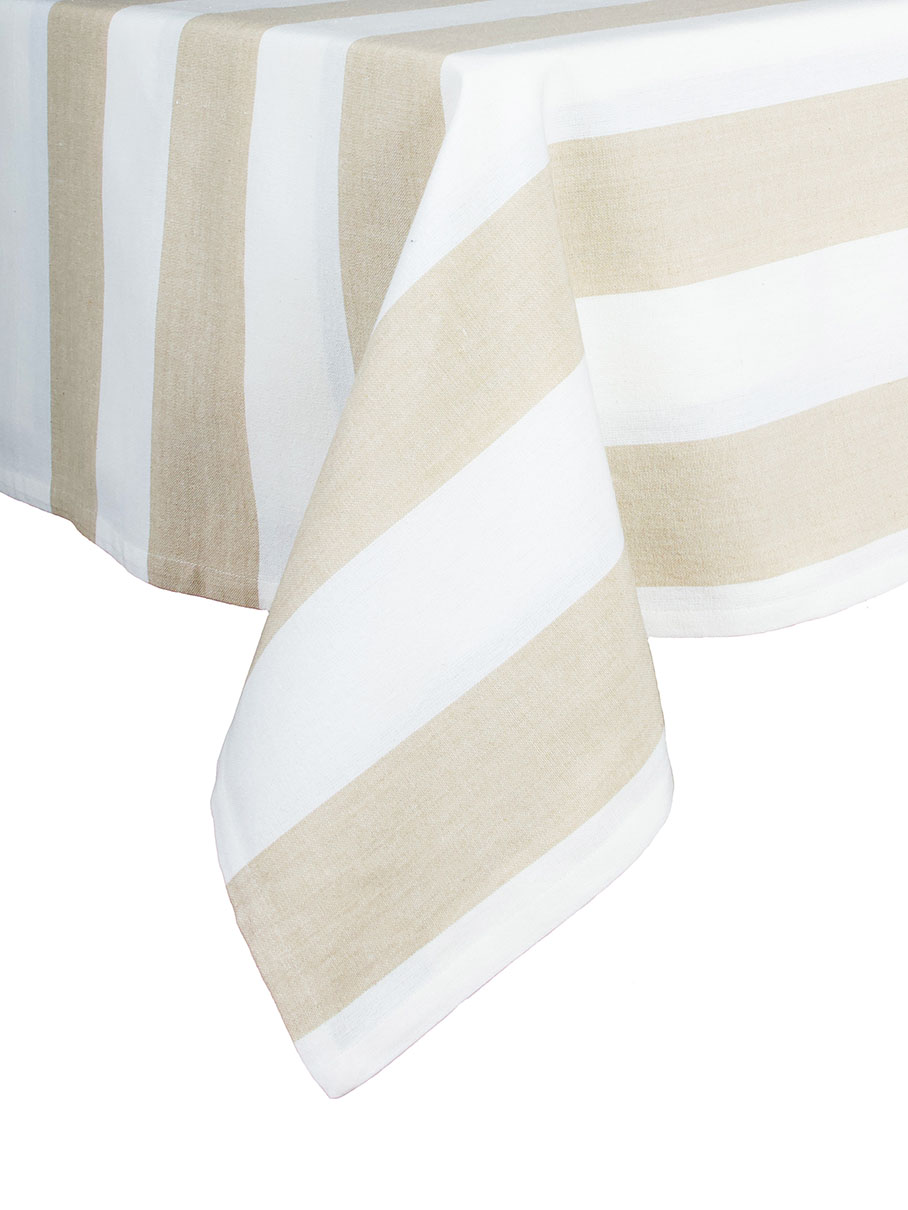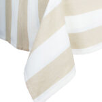 Pöytäliina pehmeää pestyn tuntuista puuvillaa lankavärjätyillä raidoilla.