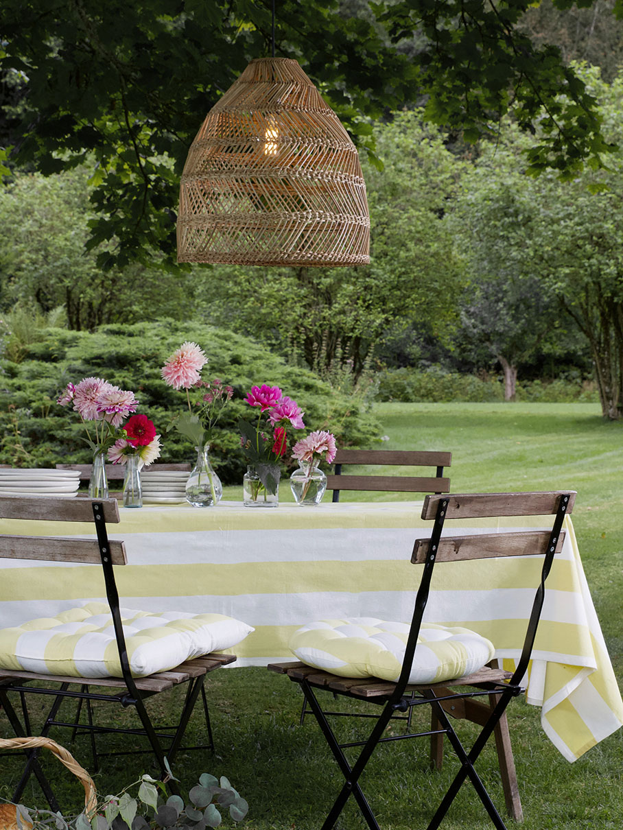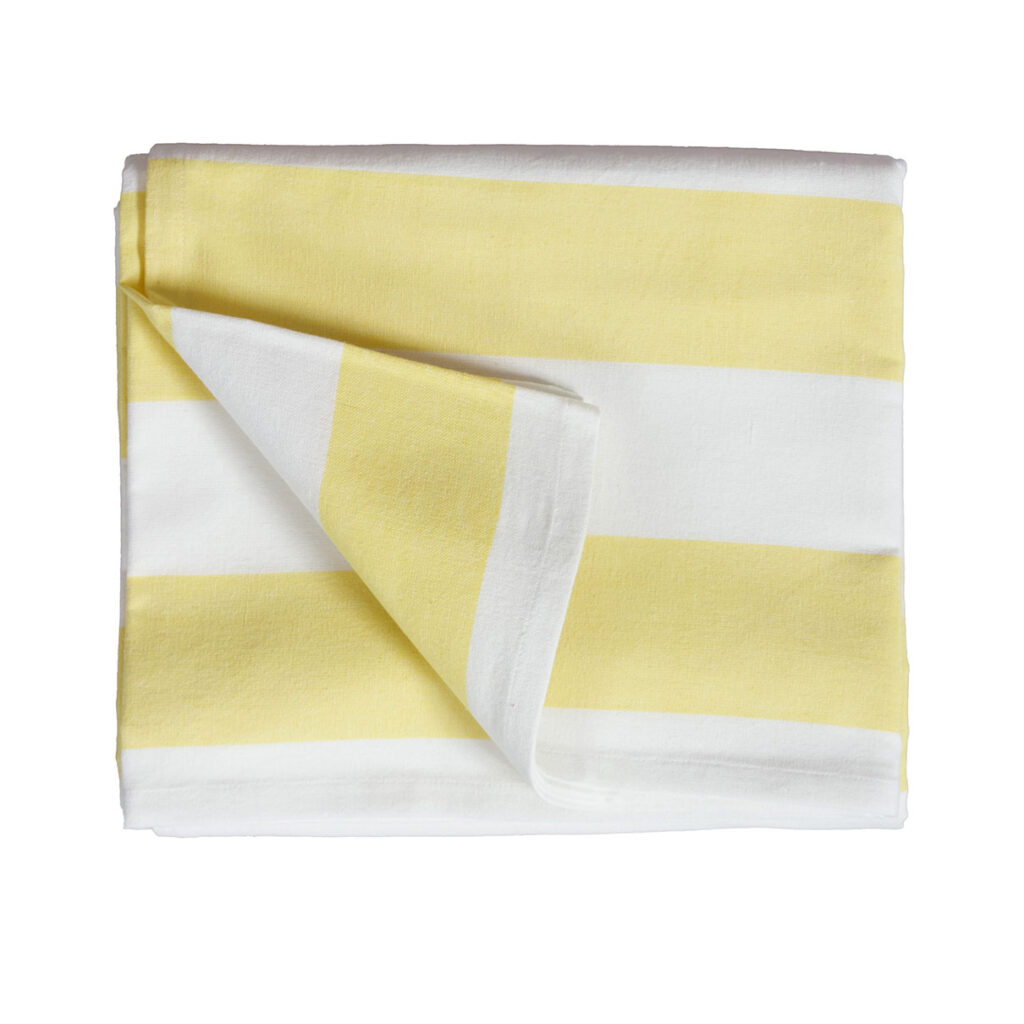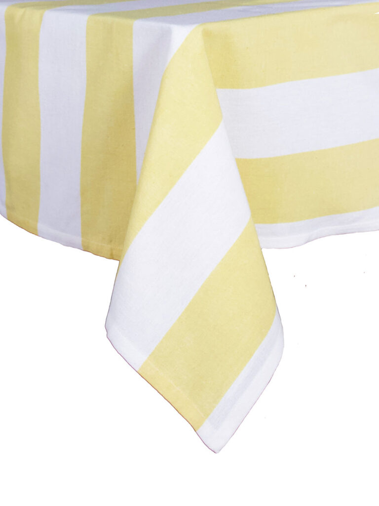 Pöytäliina pehmeää pestyn tuntuista puuvillaa lankavärjätyillä raidoilla.