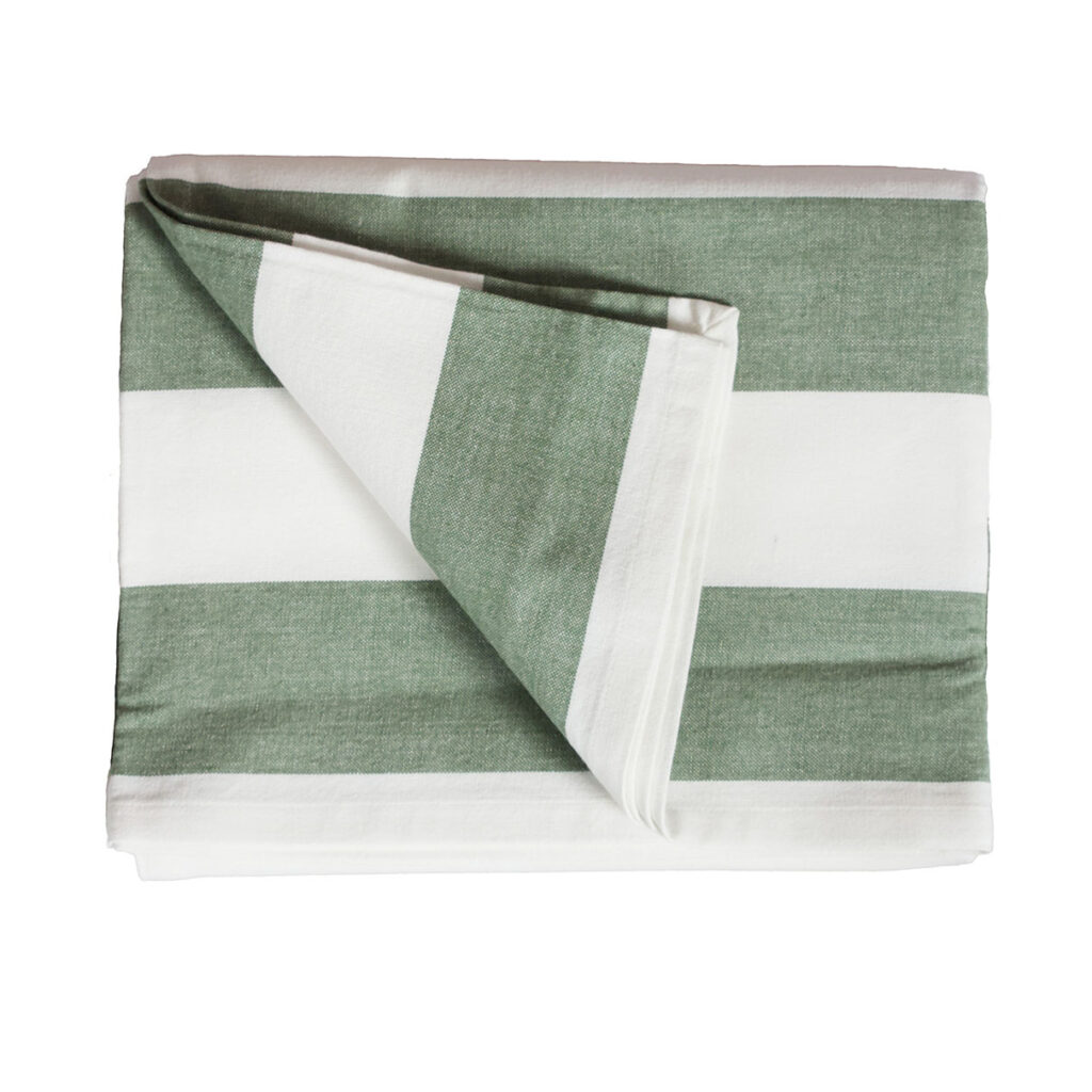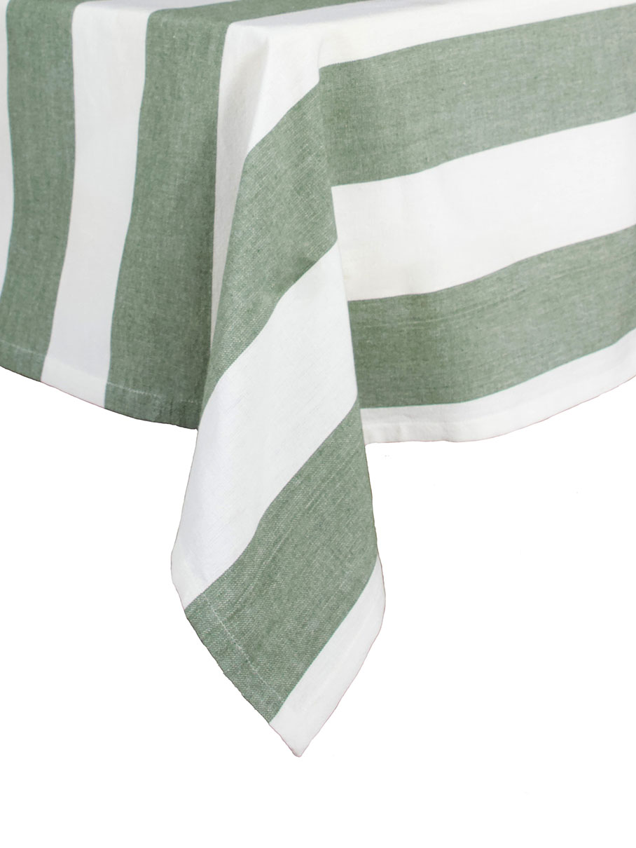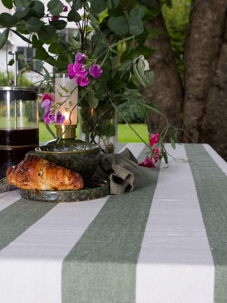 Pöytäliina pehmeää pestyn tuntuista puuvillaa lankavärjätyillä raidoilla.
