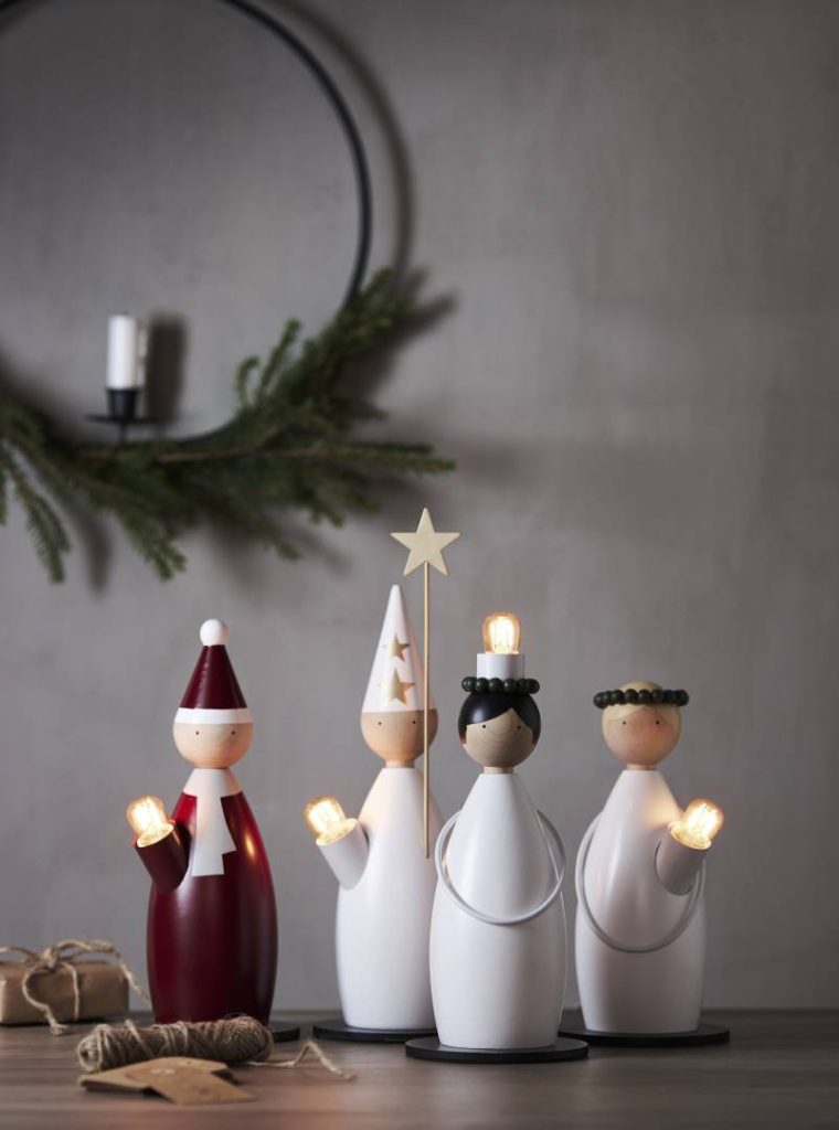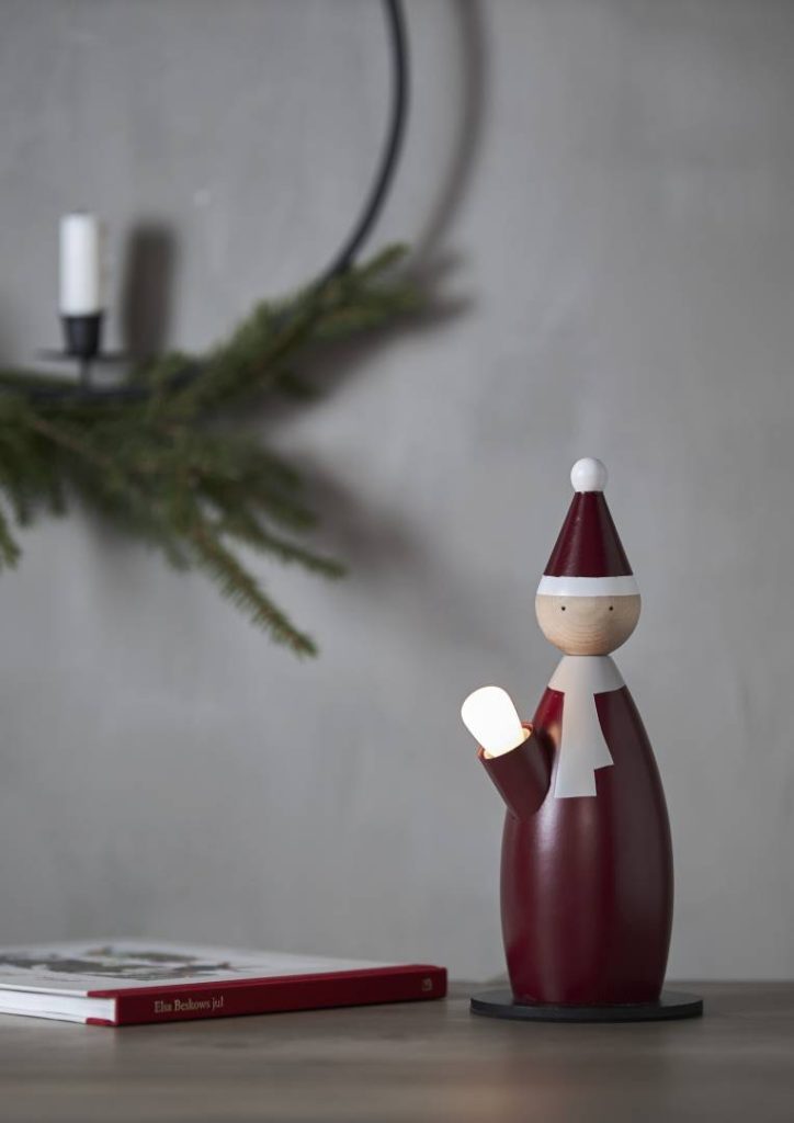 Kaunis puusta valmistettu Nisse-figuuri joulunajan koristeeksi.