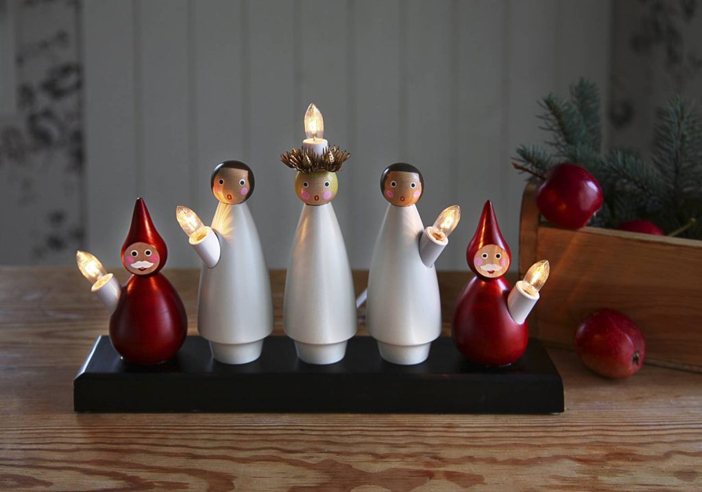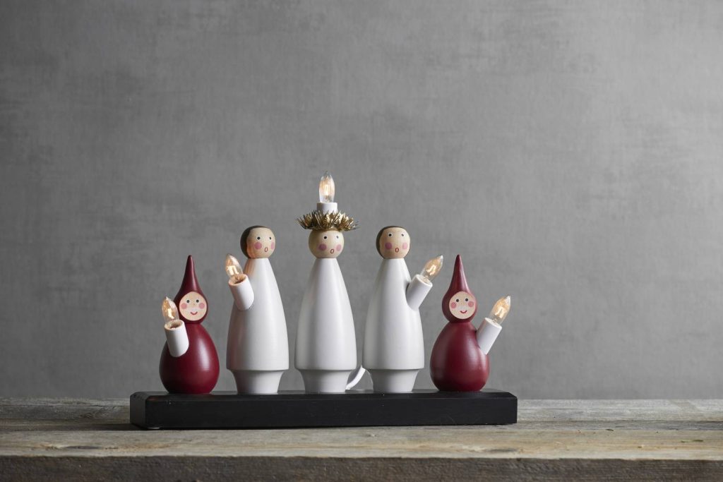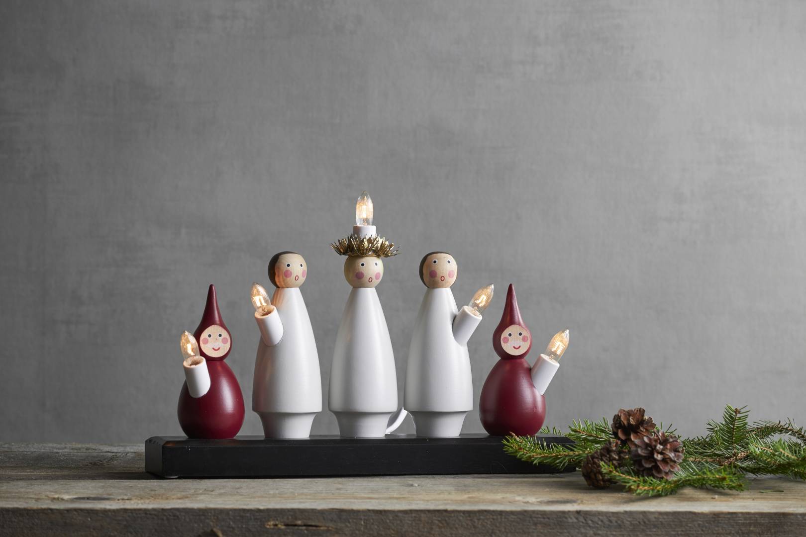 5-haarainen puinen Luciakuoro-kynttelikkö sisäkäyttöön.