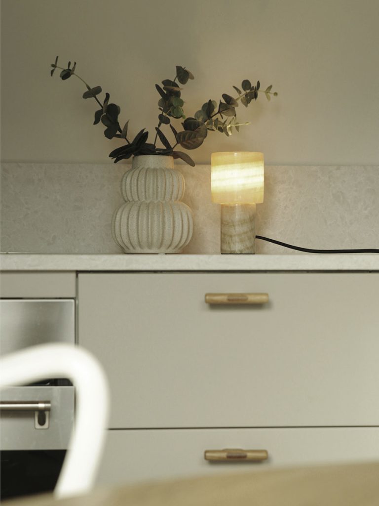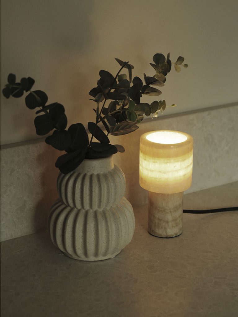 Marmorista valmistettu pöytävalaisin, joka luo lämpimän ja miellyttävän valaistuksen. Marmori on luonnonmateriaali, minkä vuoksi jokainen valaisin on ulkonäöltään uniikki.
