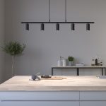 Moderni ja suoralinjainen 5-osainen Lucy-riippuvalaisin sopii esimerkiksi keittiösaarekkeen tai ruokapöydän yläpuolelle.