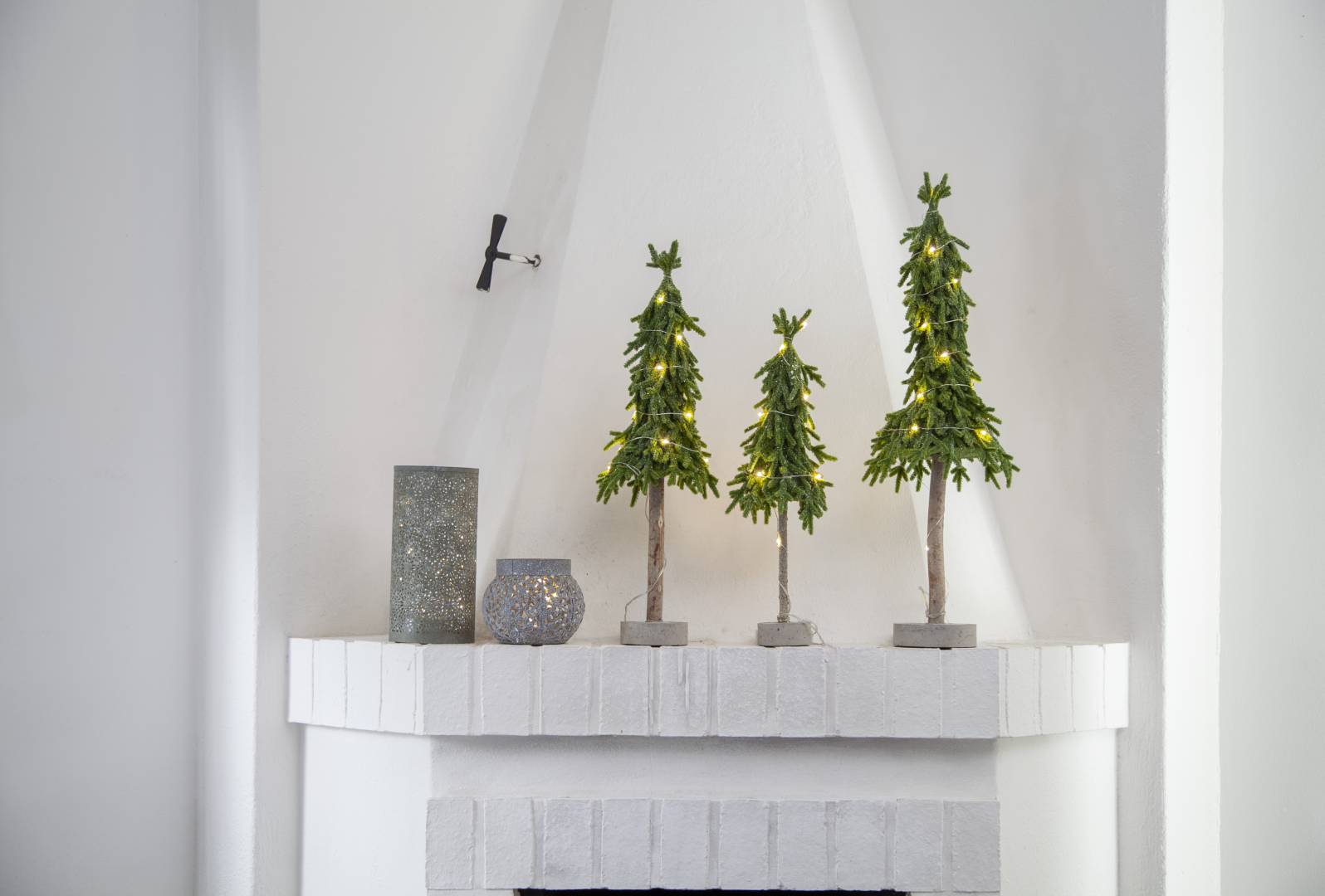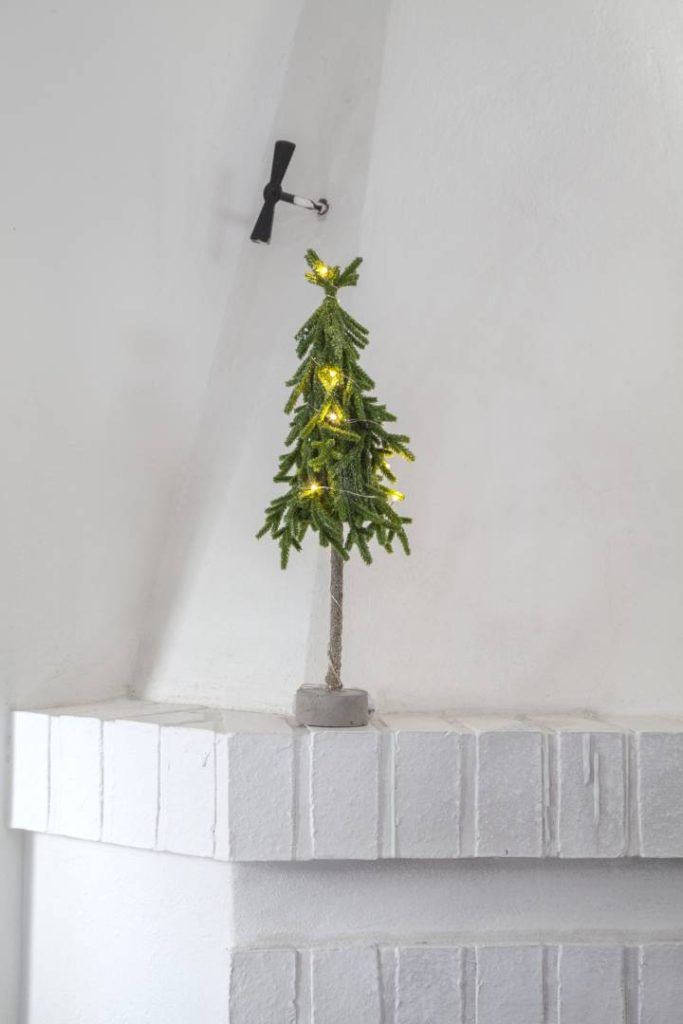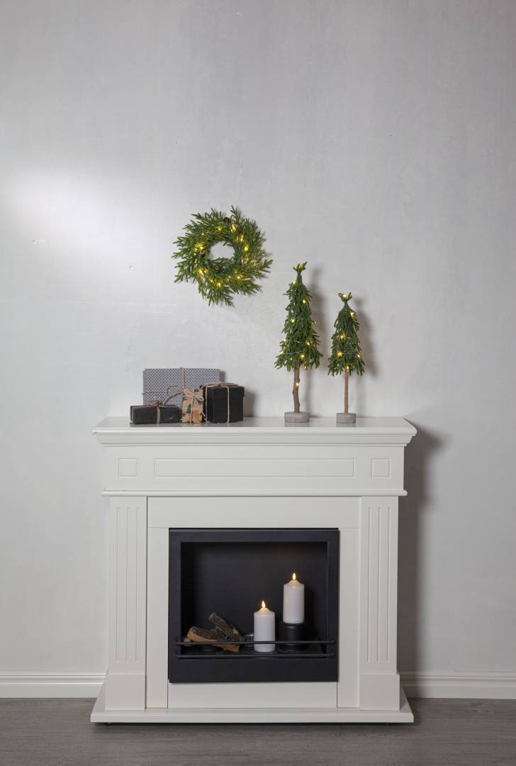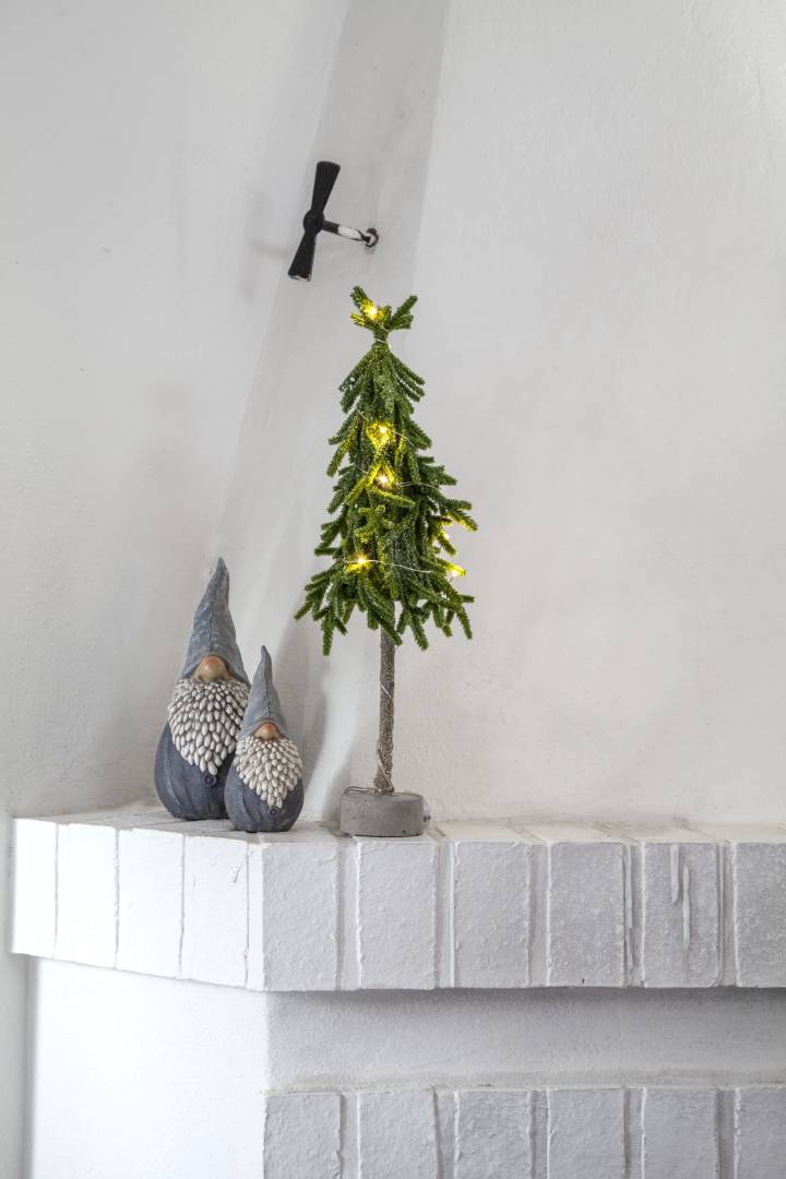 10 lämpimän valkoista LED-valoa. Pieni betoninen jalusta. Sisäkäyttöön.
