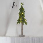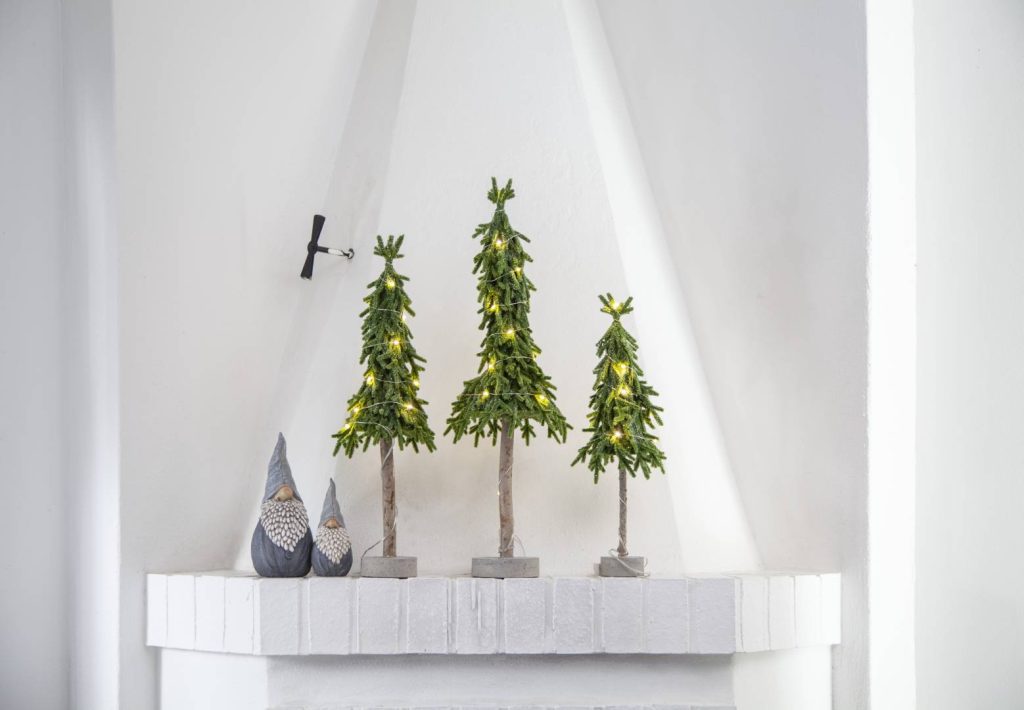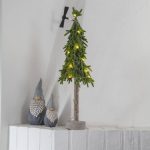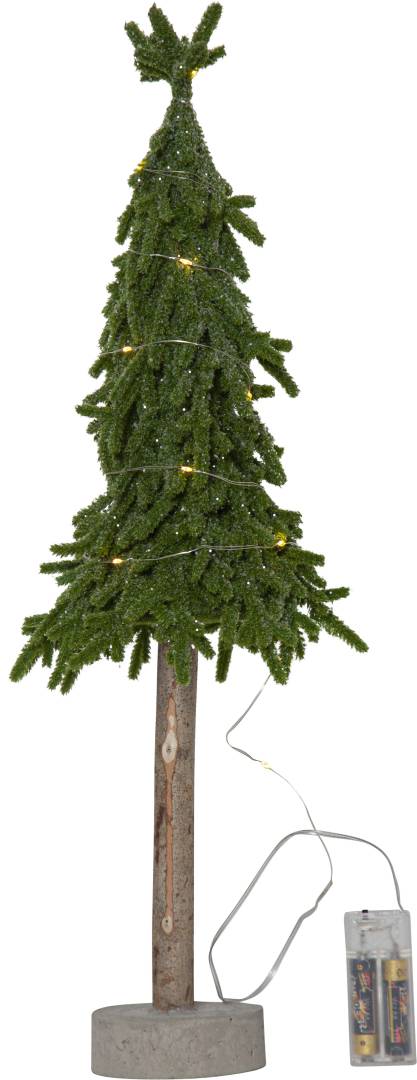 Polyeteenistä valmistettu paristokäyttöinen koristepuu, jossa koristeena glitteriä ja