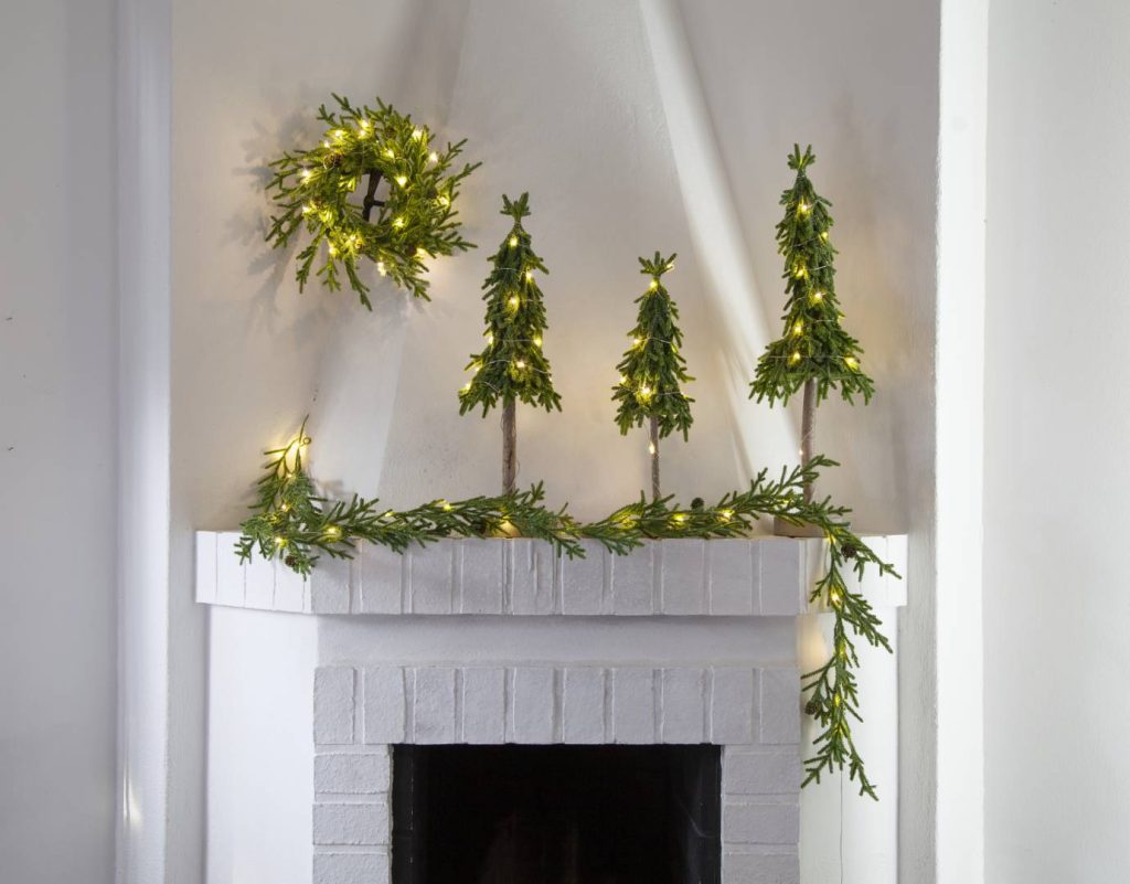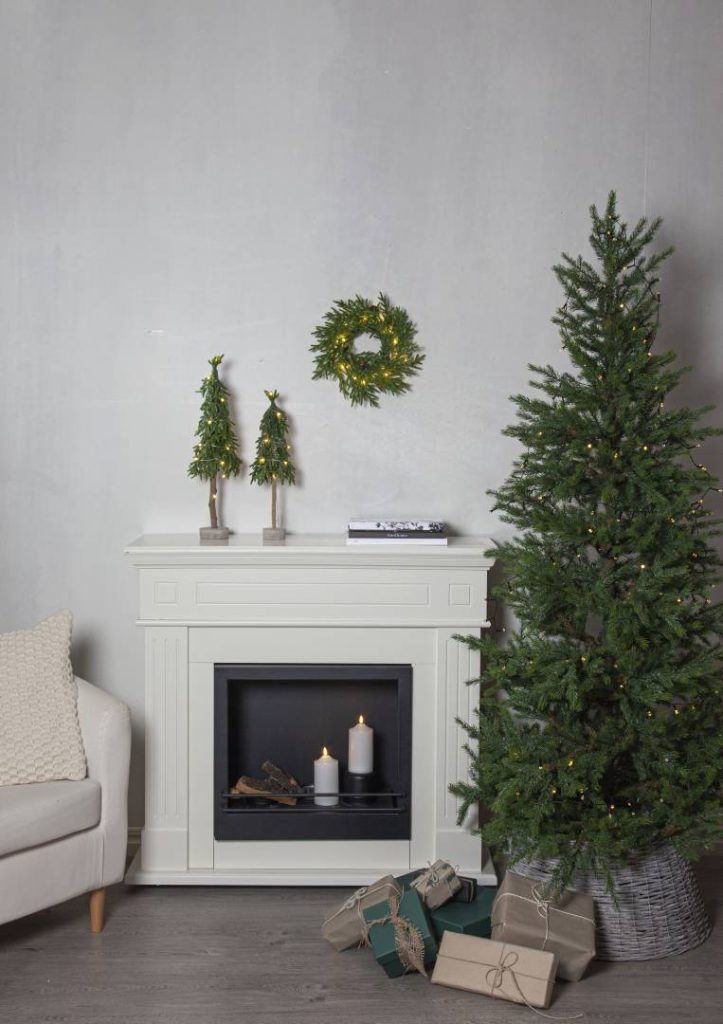 15 lämpimän valkoista LED-valoa. Pieni betoninen jalusta. Sisäkäyttöön.