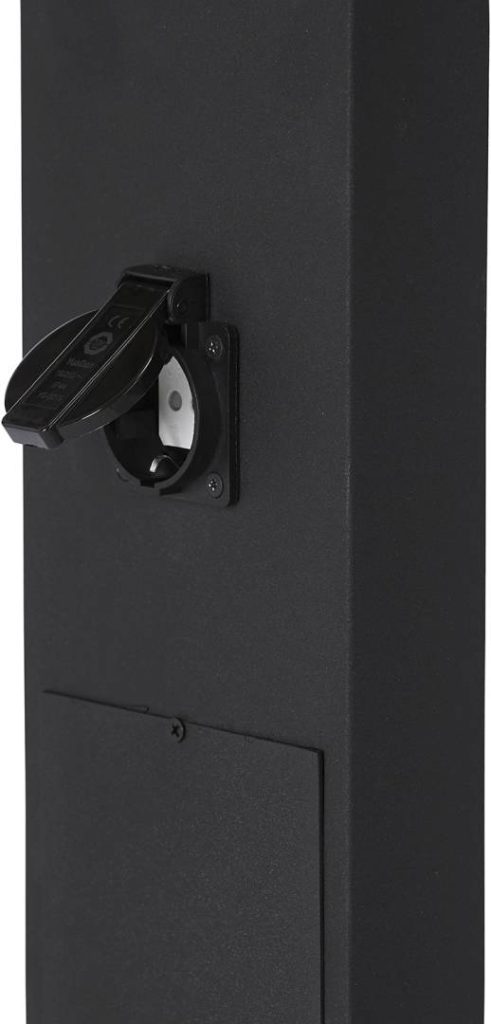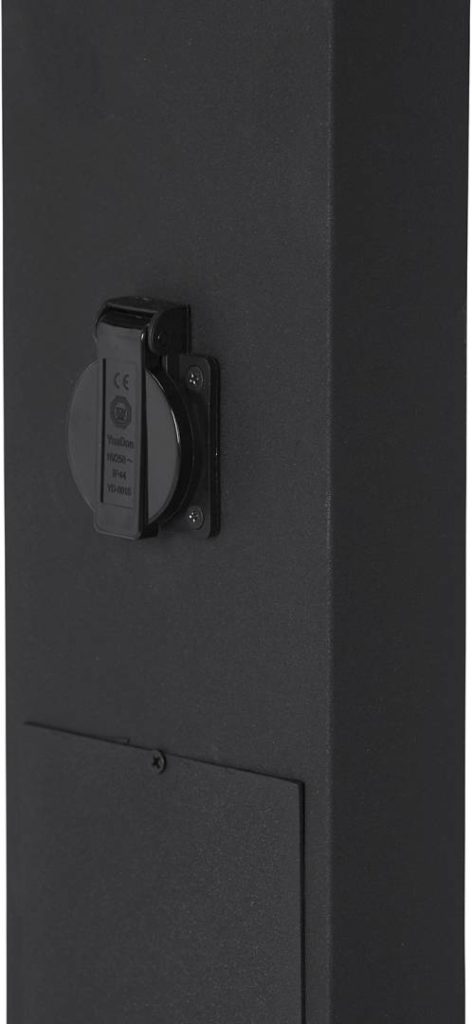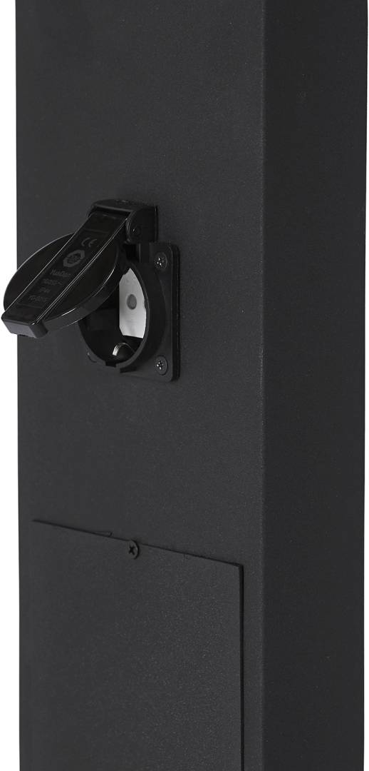 Pylväsvalaisin jauhemaalattua metallia. Valaisimen taustapuolella on 230V IP44 pistorasiapaikka.