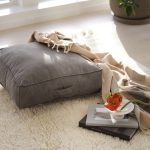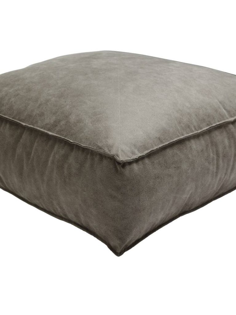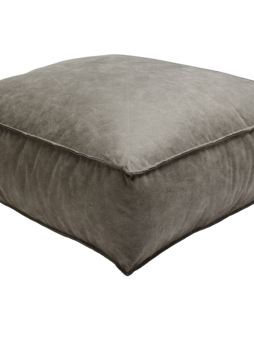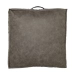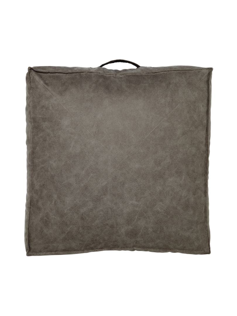 Lattiatyyny keinonahkaa. Yhdellä sivulla kantokahva. Tyyny on täytetty pienillä rakeilla.
