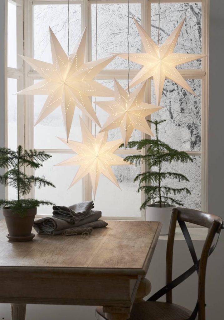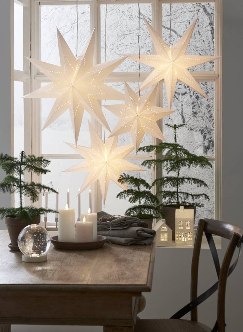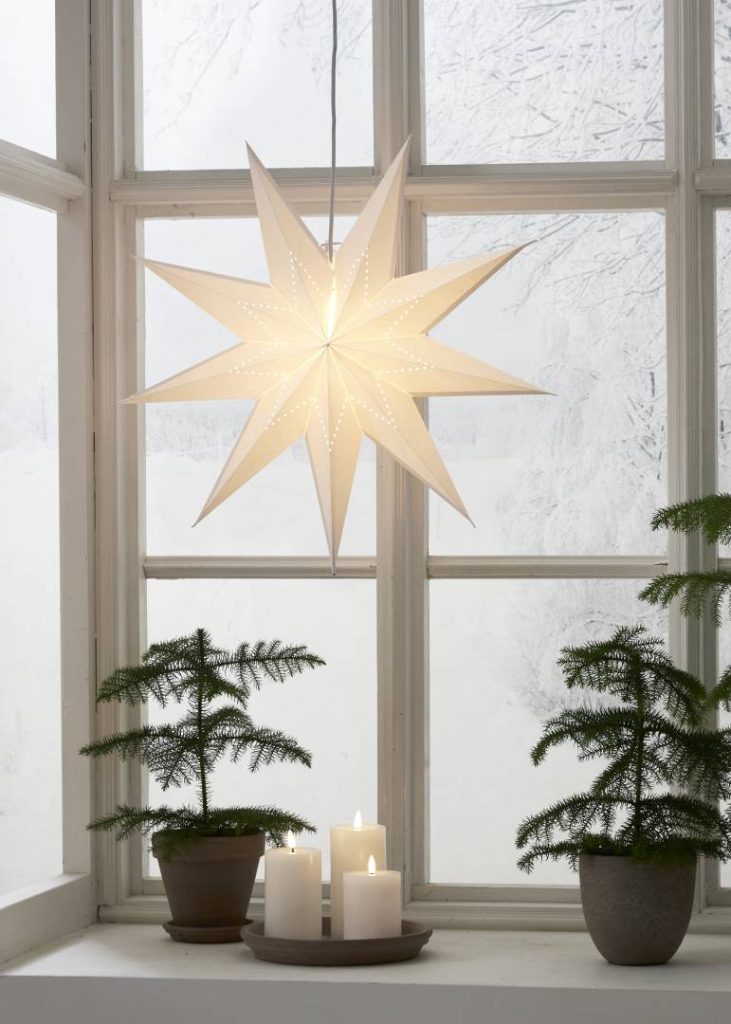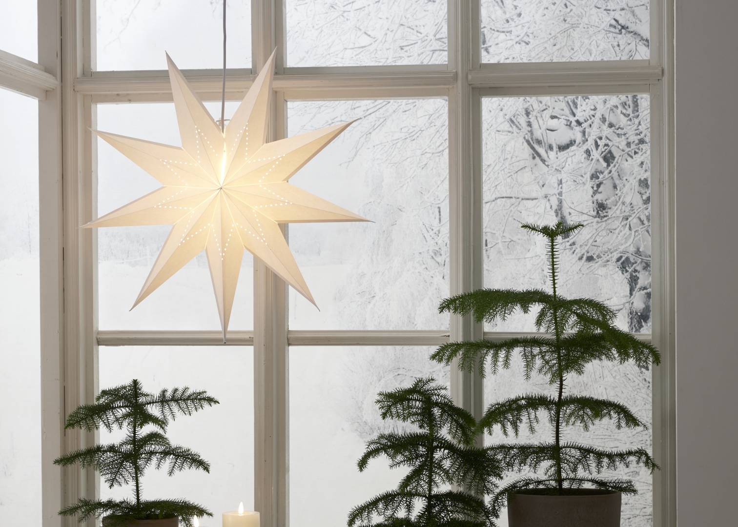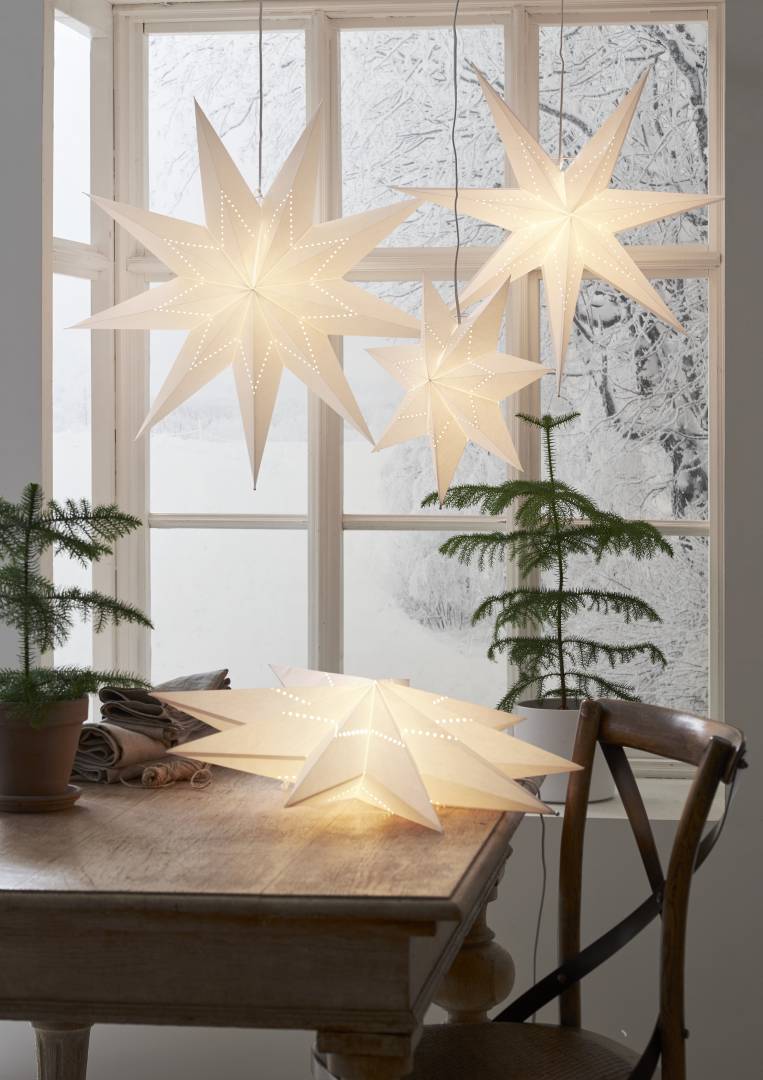 Kaunis 9-sakarainen paperitähti pelkistetyllä reikäkuvioinnilla. Sopii ikkunaan tai seinälle tuomaan kotiin ihanaa joulutunnelmaa.