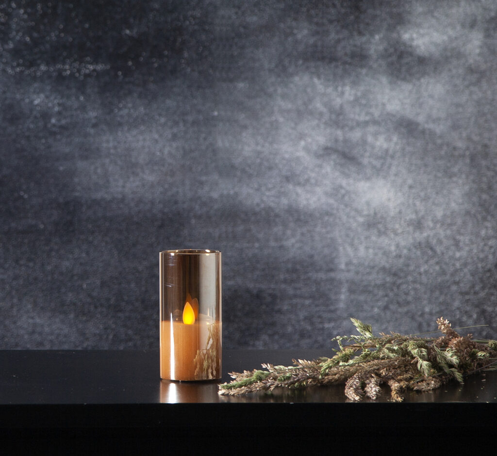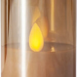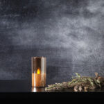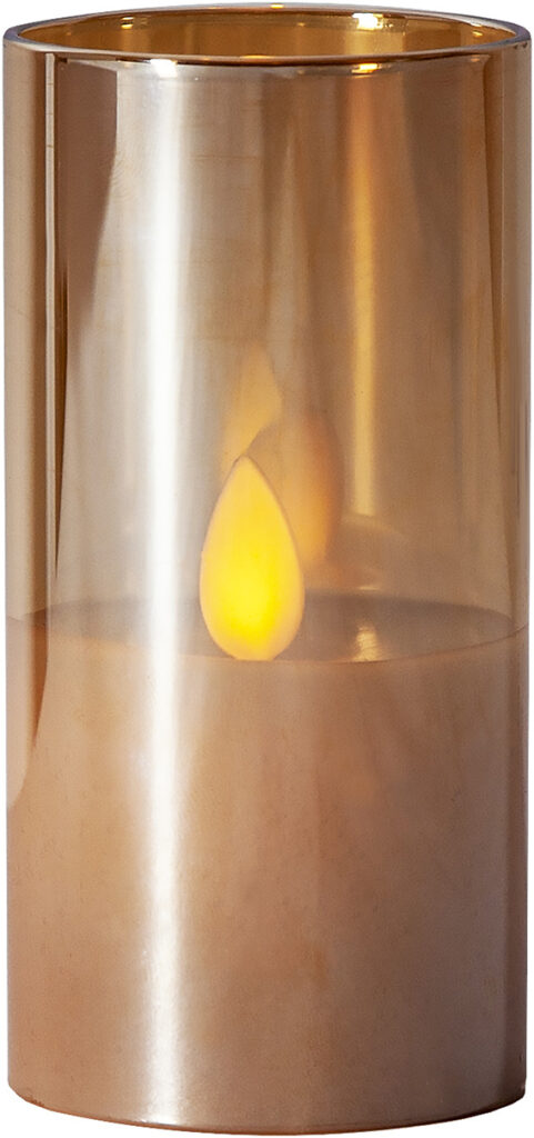 Vahakynttilä lasissa lepattavalla liekillä. Sisäkäyttöön.