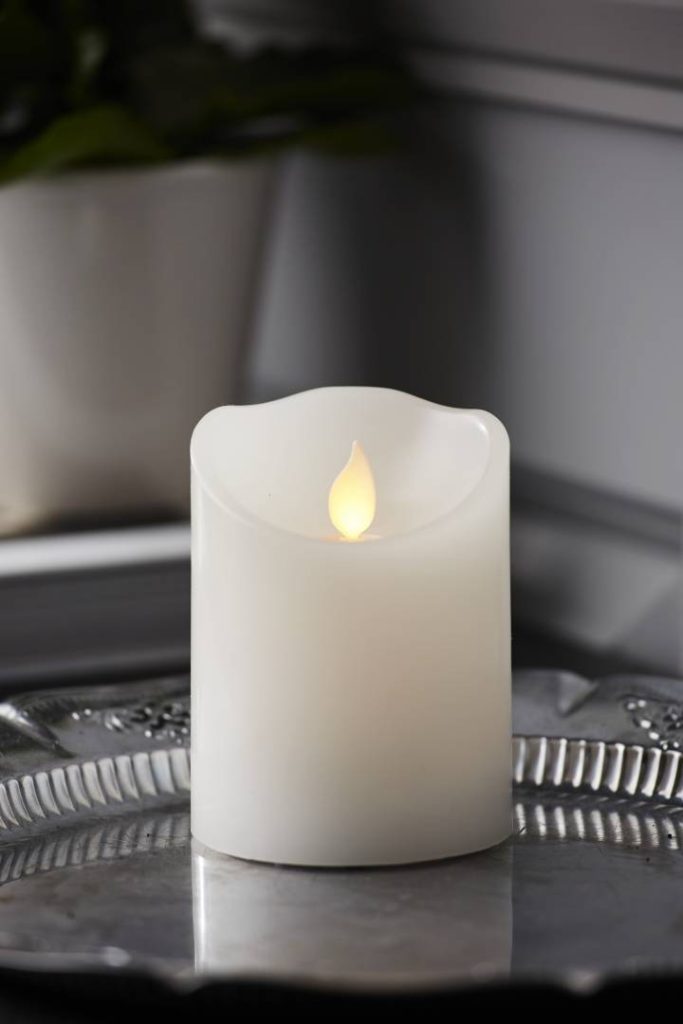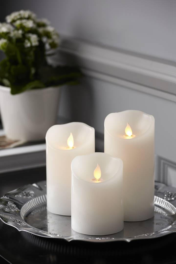 Sisäkäyttöön sopiva vahasta valmistettu LED-kynttilä, jossa on lämpimän keltainen lepattava Twinkle-liekki.