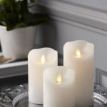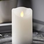 Sisäkäyttöön sopiva vahasta valmistettu LED-kynttilä, jossa on lämpimän keltainen lepattava Twinkle-liekki.