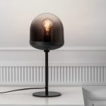 Pöytävalaisin lasia ja metallia.