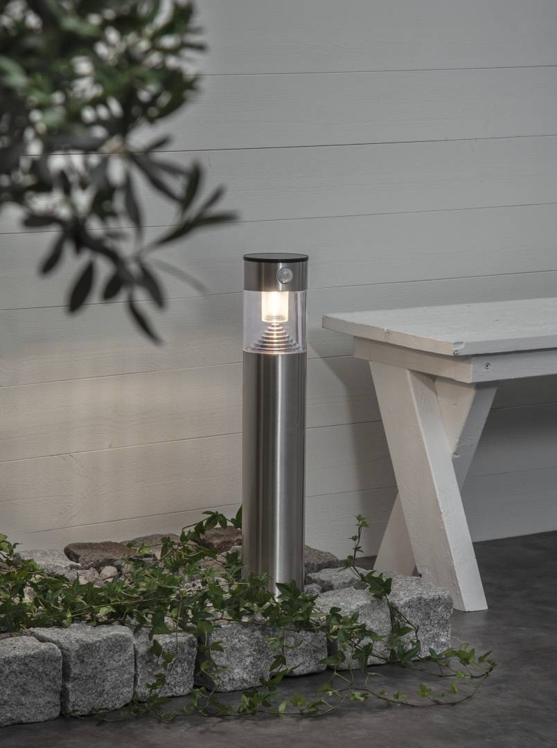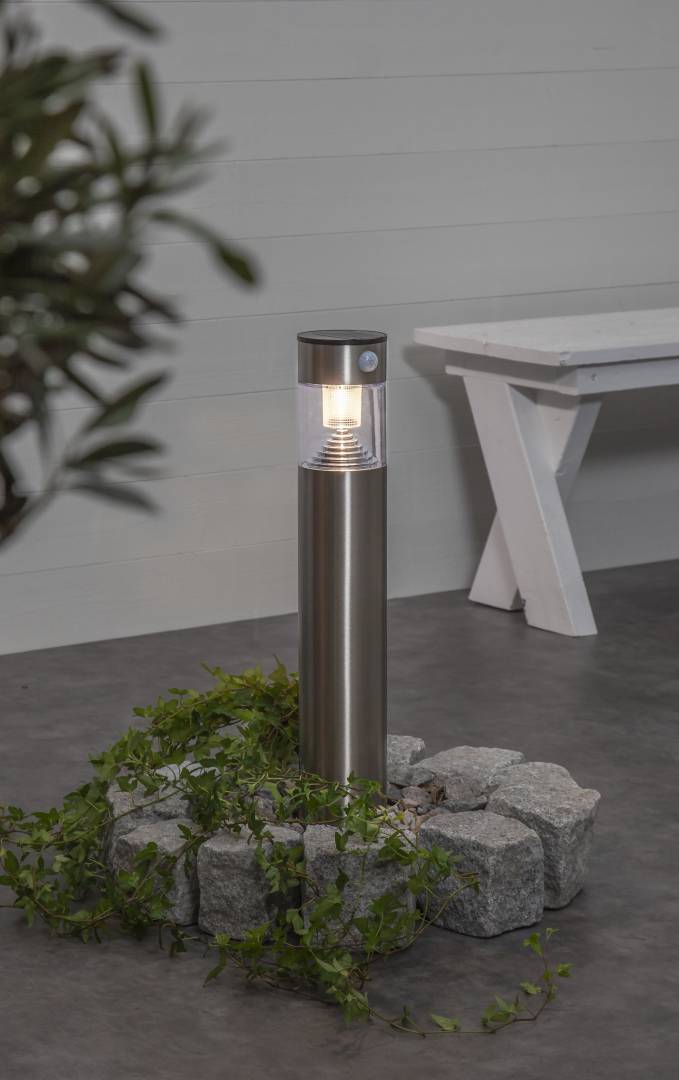 Aurinkokennolla toimiva 50 cm korkea pollari, jossa on lämpimän valkoinen LED-valo. Pollari valaisee hämärällä 10 lumenin valoteholla, ja liikesensorin havaitessa liikettä valoteho nousee 40 sekunnin ajaksi 80 lumeniin. Tämän jälkeen 10 lumenin valoteho palautuu. Sopii esimerkiksi sisäänkäynnin läheisyyteen, kulkureittien varrelle tai puutarhaan.