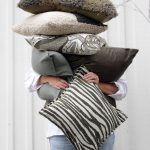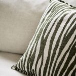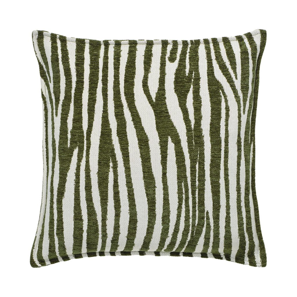 Tyynynpäällinen, jossa on yksivärinen taustakangas ja samettinen kohokuvio. Vetoketju alareunassa.
