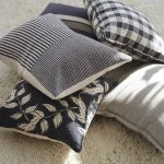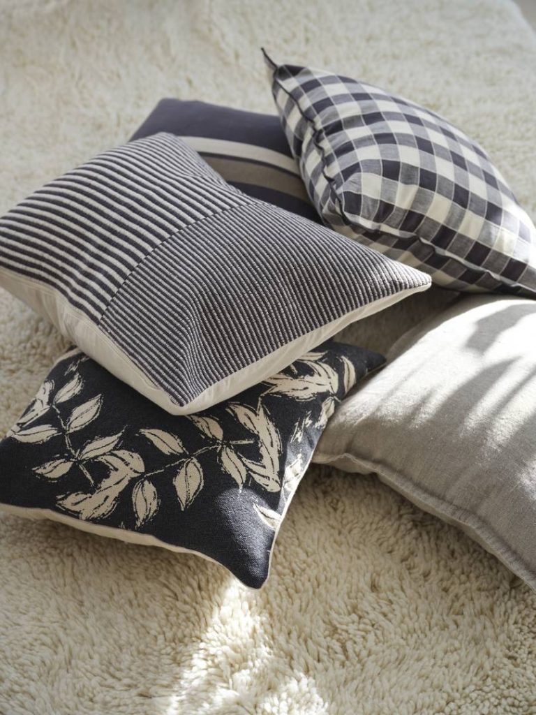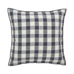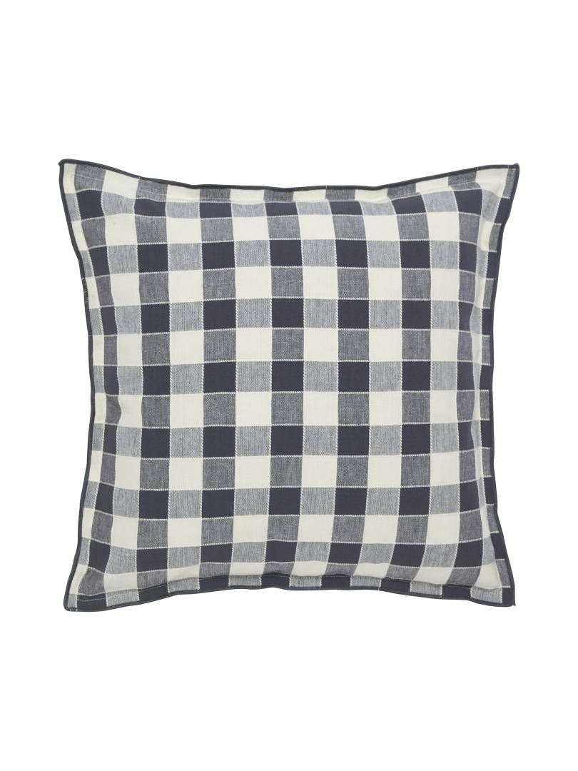Puuvillainen tyynynpäällinen lankavärjätyillä ruuduilla, reunoissa yliluotteluommel. Vetoketju alareunassa.
