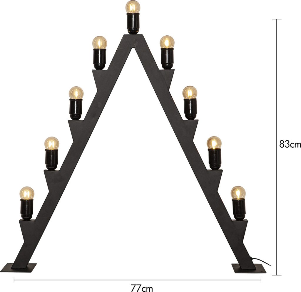 Kynttelikössä on erikoispitkä johto, 3,5 metriä, ja muuntajassa ajastinmahdollisuus.