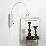 Minimalistinen seinävalaisin kätevällä joustavalla varrella, joka mahdollistaa valon suuntaamisen haluttuun kohteeseen.