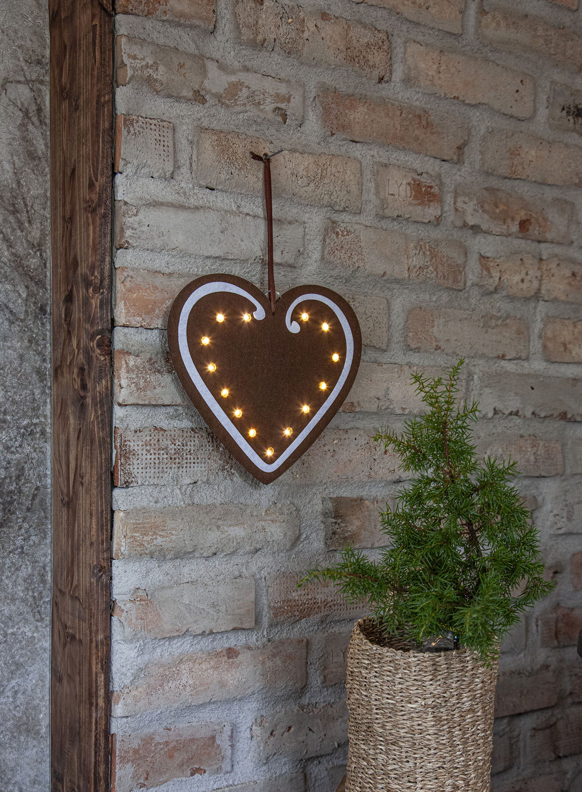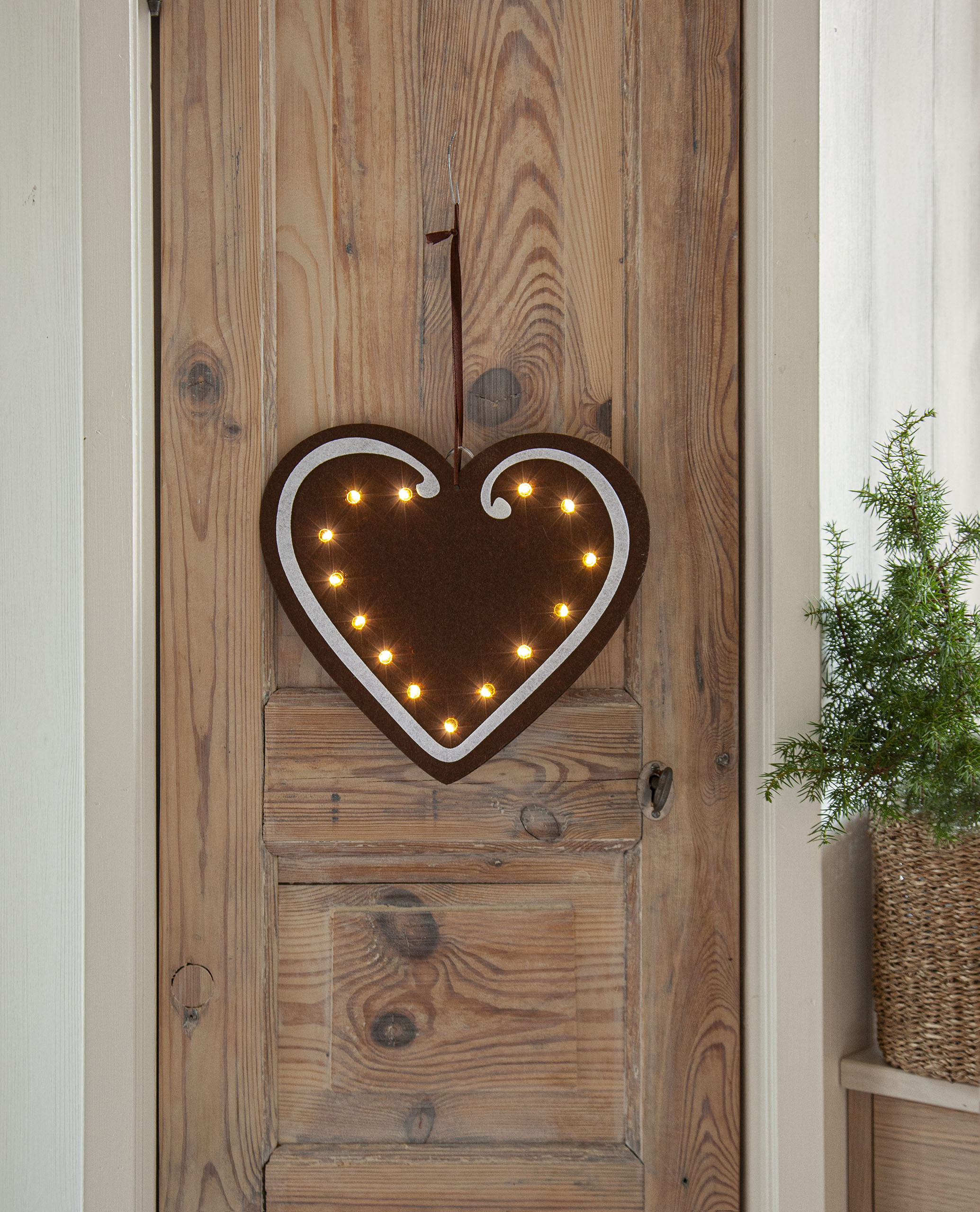 Piparin muotoinen joulukoriste, jota valaisee 10 lämpimän valkoista LED-valopistettä. Sopii sisäkäyttöön esimerkiksi ovikoristeeksi tai seinälle.