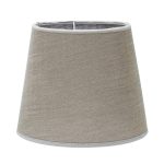 Lampunvarjostin polyesteriä. Kangas on pestyn tuntuista ja siinä on kevyt kiilto. Läpinäkyvä sisäpinta, reunusnauha.