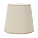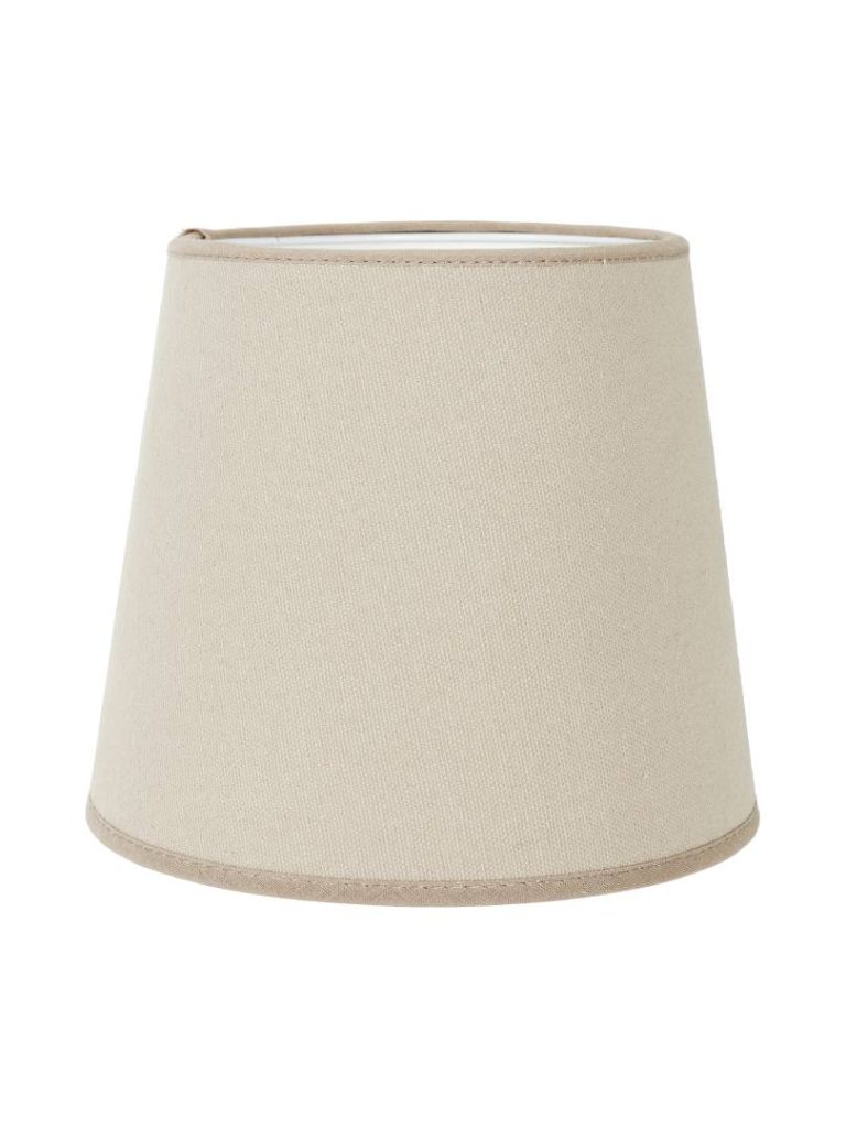 Lampunvarjostin napakkaa mattapintaista puuvillakangasta. Valkoinen sisäpinta ja kankaan värinen reunusnauha.