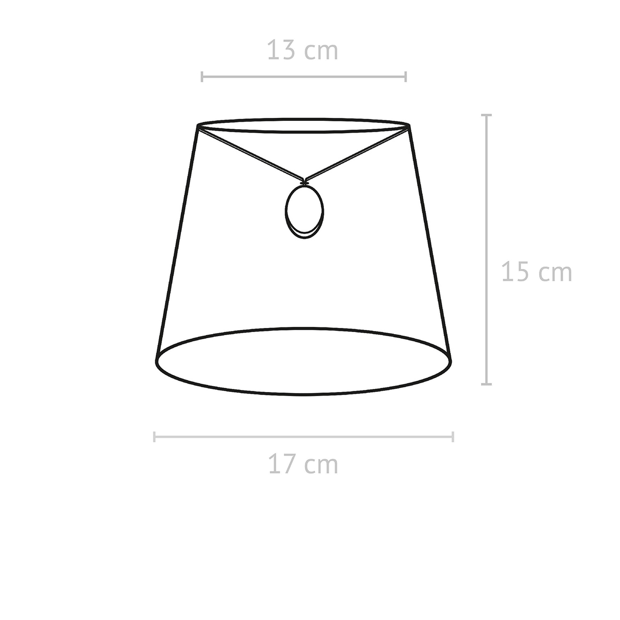 Varjostimessa on vaalea sisäpinta, ja reunusnauha on samaa kangasta kuin varjostin.