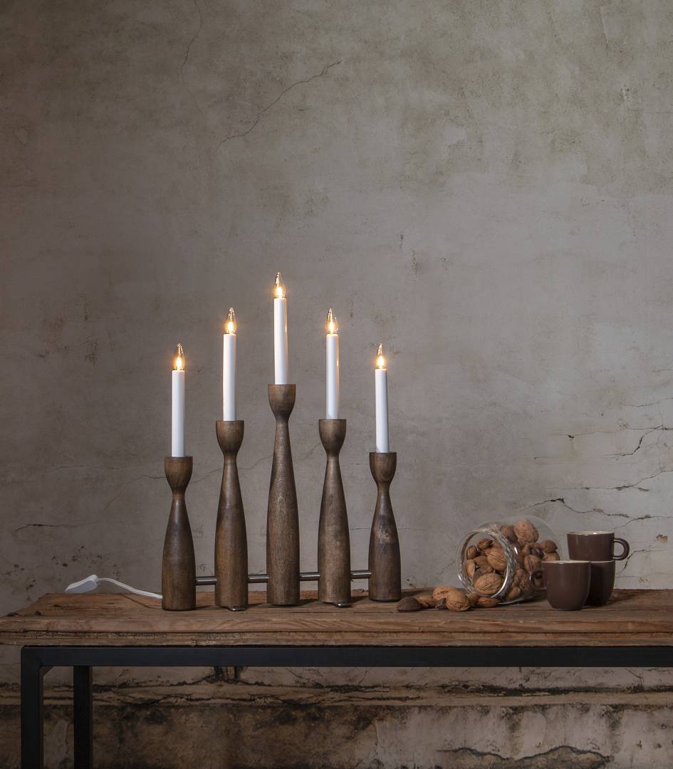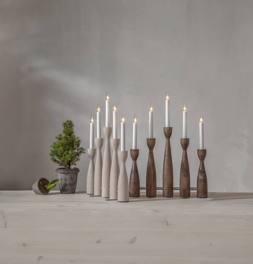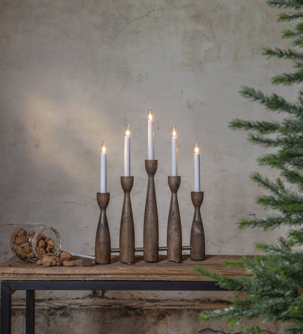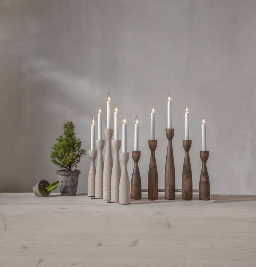 Elegantti ja moderni puukynttelikkö, joka sopii esimerkiksi ikkunalaudalle tai lipaston päälle tuomaan kotiin jouluista tunnelmaa.