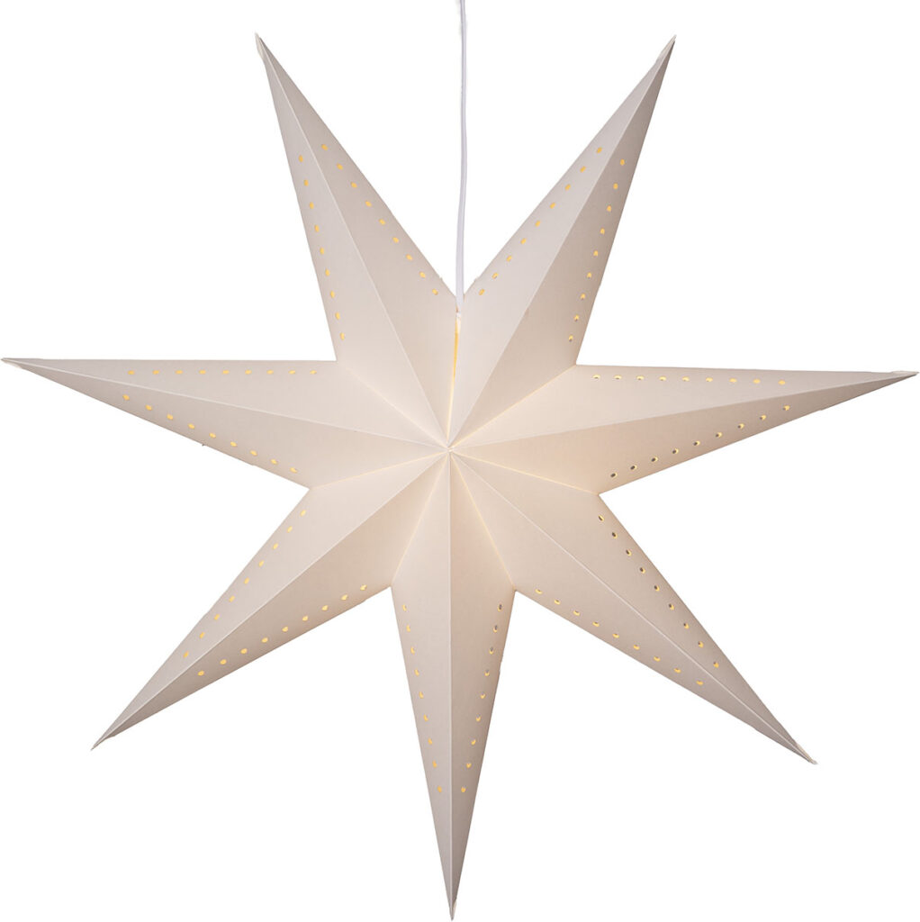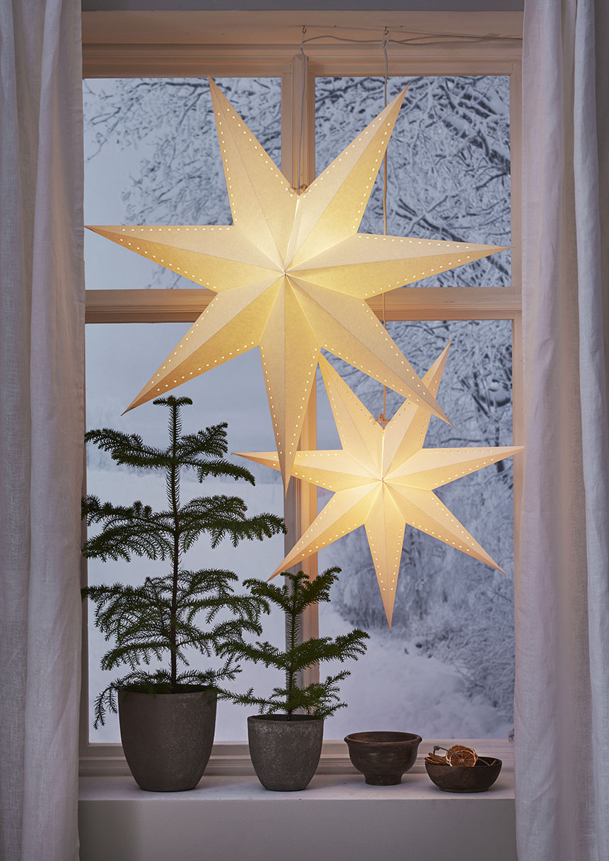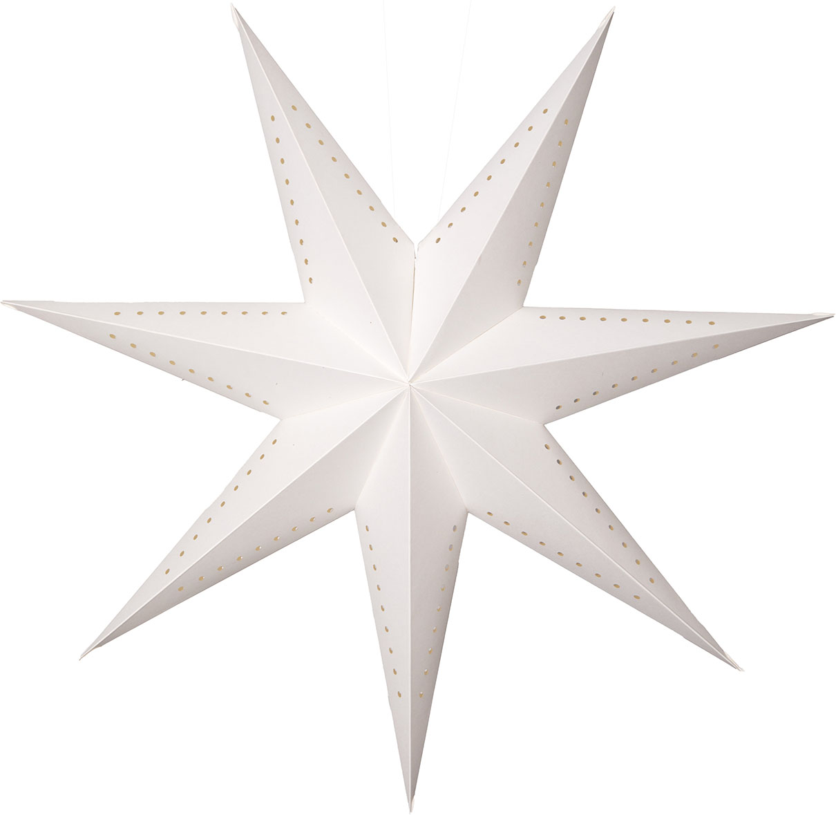 Valkoinen paperitähti tyylikkäällä reikäkuvioinnilla tuo kotiin ihanaa joulutunnelmaa. Ripusta yksi tai useampi tähti ikkunaan tai seinää vasten.