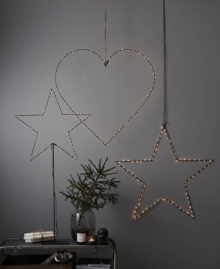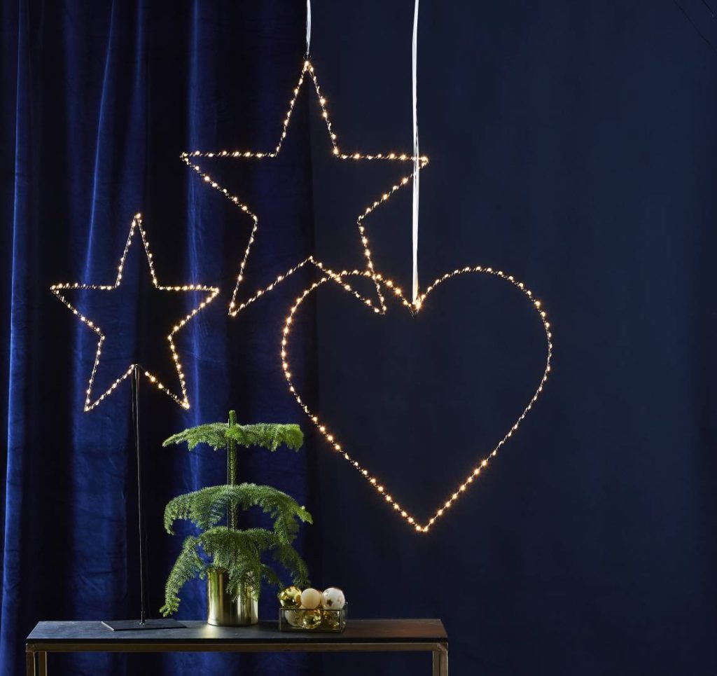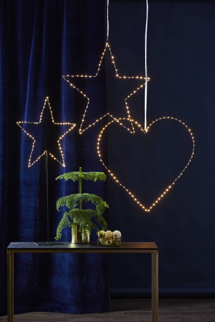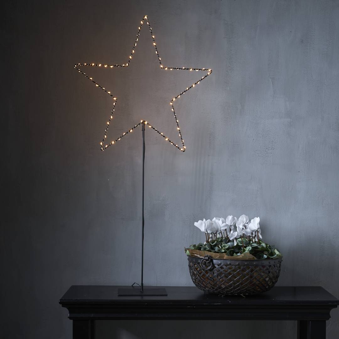 Metallinen pöytätähti, jota valaisee 80 lämpimän valkoista LED-valopistettä. Sisäkäyttöön.