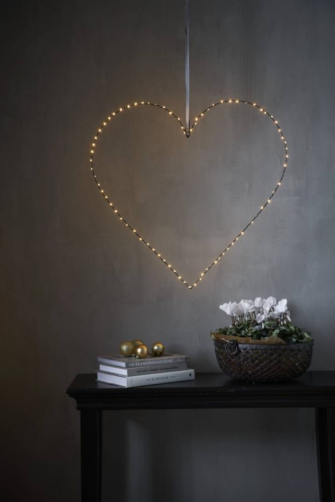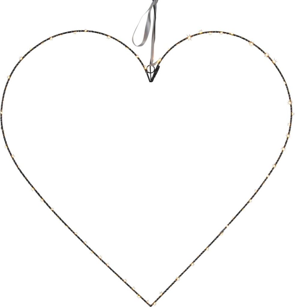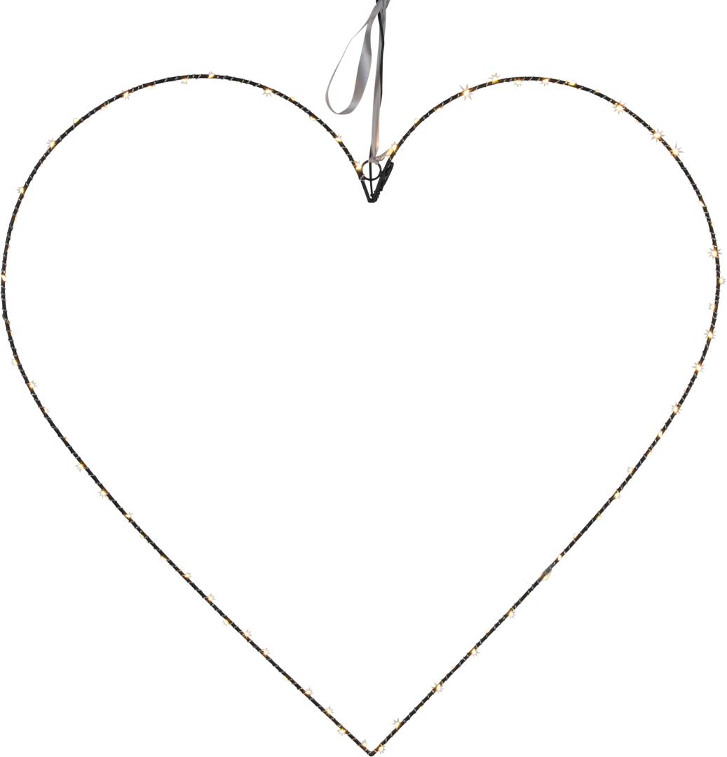 Ripustettava musta metallisydän, jota valaisee 80 lämpimän valkoista LED-valopistettä. Sopii esimerkiksi ikkunaan tai seinälle.