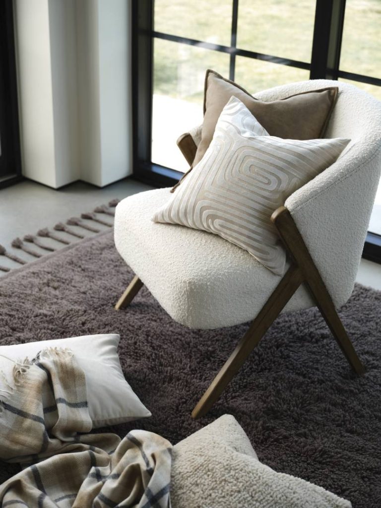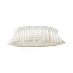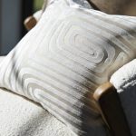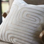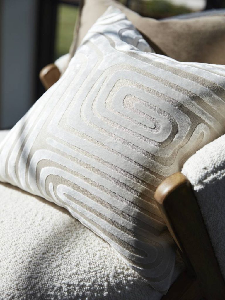 Tyynynpäällinen, jossa on yksivärinen taustakangas ja samettinen kohokuvio. Vetoketju alareunassa.