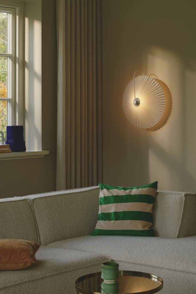 Nadia-seinävalaisin on uudistettu versio klassisesta vekkivalaisimesta. Valaisimen taivutettu metallivarsi antaa mallille elegantin ja modernin säväyksen. Valo siivilöityy vekkivarjostimen läpi pehmeästi.