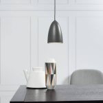 Harmaa LED-riippuvalaisin metallia ja muovia.