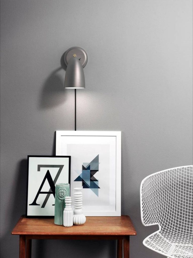 Tyylikäs seinävalaisin metallia. Varjostimen suunta on säädettävissä.
