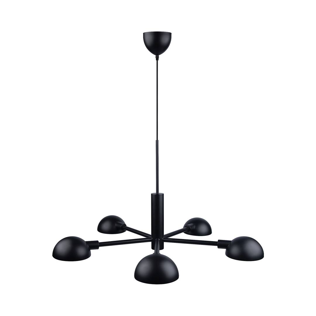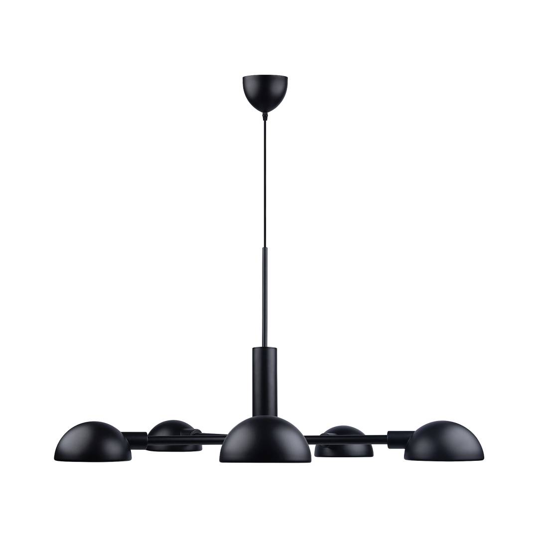 Musta minimalistinen riippuvalaisin, joka sopii täydellisesti pyöreän ruokapöydän yläpuolelle. Varjostimissa on häikäisysuojukset, jotka luovat tasaisen valon.