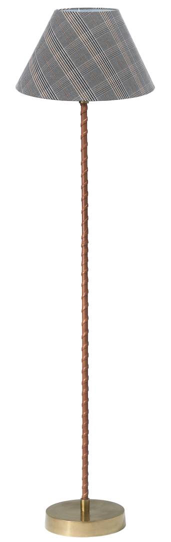 Lattiavalaisin metallia, väri antiikkimessinki. Jalan ympäri kierretty koristenauha on keinonahkaa.
