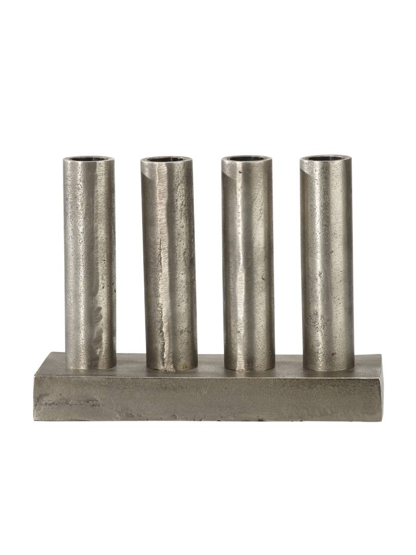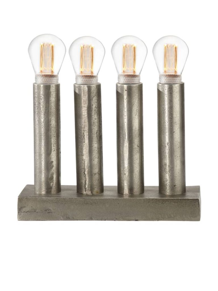 Industrial-tyylinen 4-haarainen metallikynttelikkö. Täydennä koristeellisilla valonlähteillä. Kynttelikkö on himmennettävä.