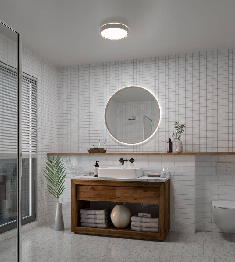 IP44, luokka 2. Kiinteä LED 15W, 3000-4000K, 1650lm, 90 Ra.