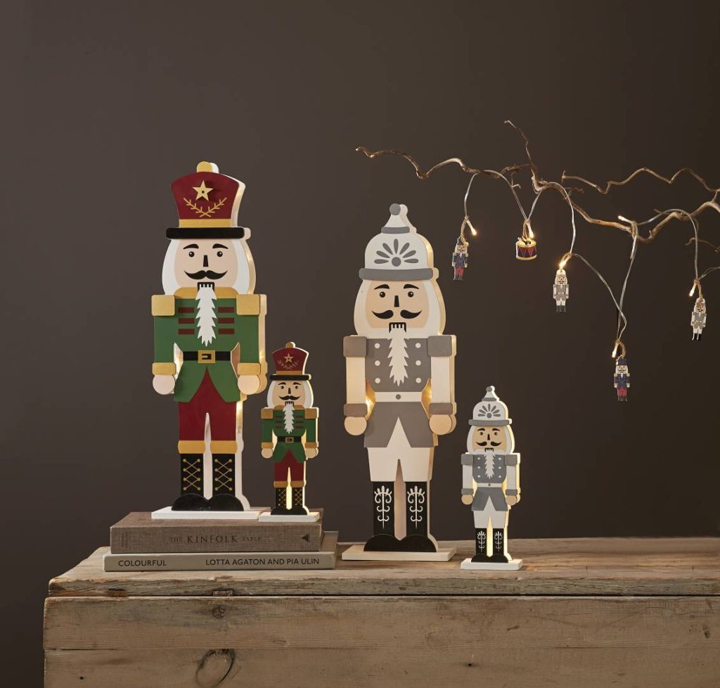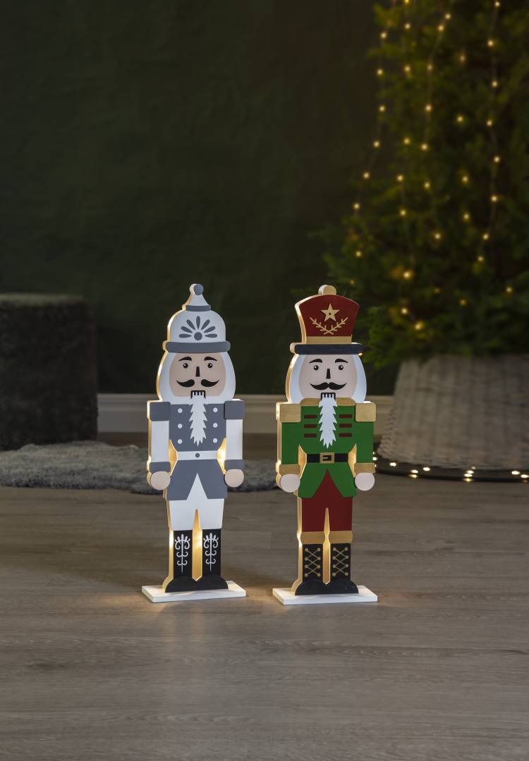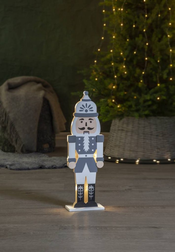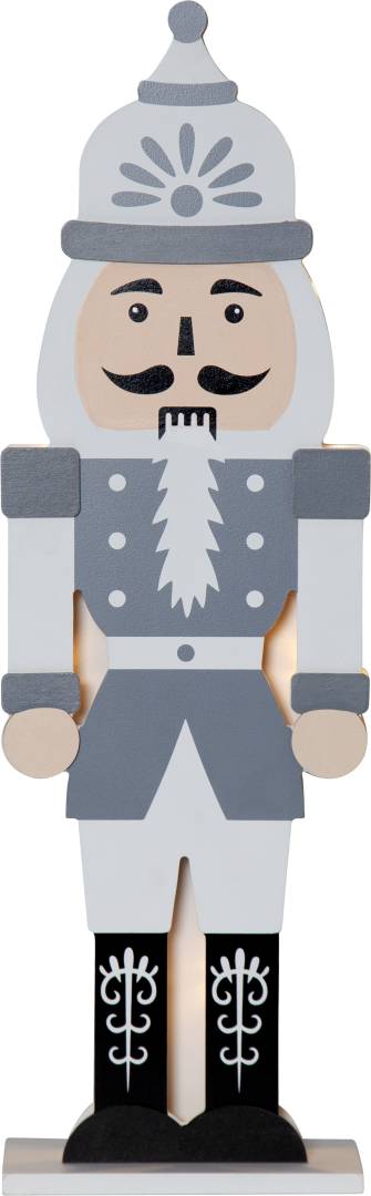 52 cm korkea Pähkinänsärkijä-hahmo valkoiseksi, harmaaksi ja mustaksi maalattua puuta. Sisäkäyttöön.