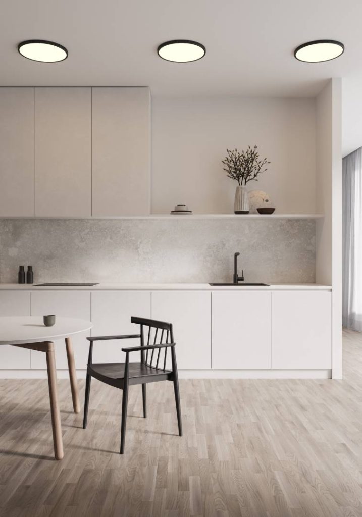 Oja Smart on erittäin ohut LED-plafondi tyylikkäällä taustavaloefektillä. Luo täydellinen tunnelma kotiisi himmentämällä valoa ja asettamalla värilämpötila viileästä lämpimän valkoiseksi Nordlux Smart -sovelluksella tai Nordlux Smart -kaukosäätimellä.