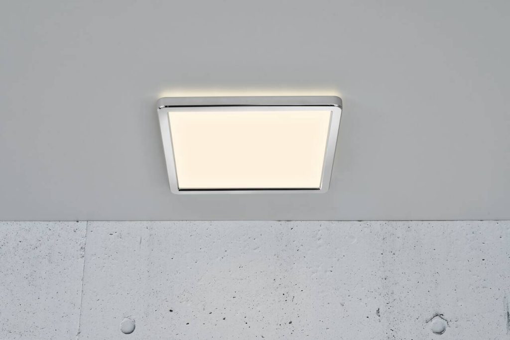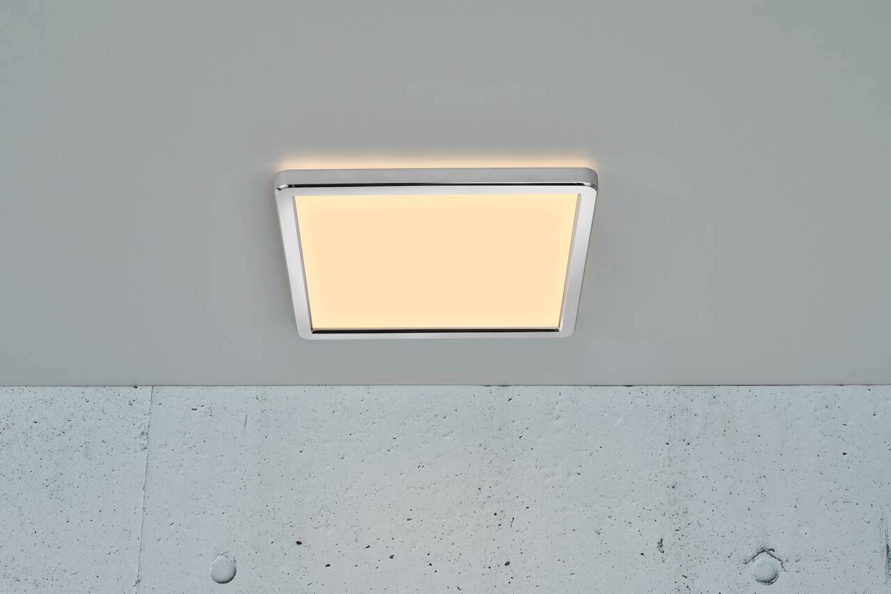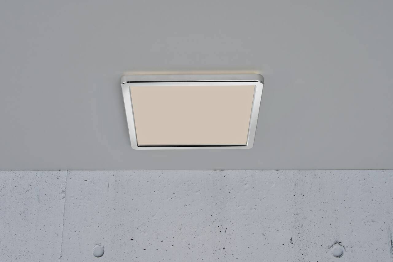 Oja Square -plafondin pakkaus sisältää sekä valkoisen että kromin värisen reunuksen, joten voit valita valaisimen lopullisen ilmeen.