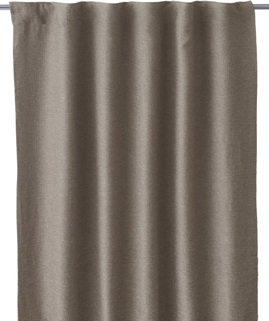Pimennysverhot, joissa on monitoiminauha yläreunassa, päärmätyt sivureunat ja yliluotteluommel alareunassa. Kankaan sisälle näkymättömiin on kudottu mustaa lankaa, joka estää valon läpäisyä. Pimennysteho 80%. Pakkaus sisältää 2 verhoa.