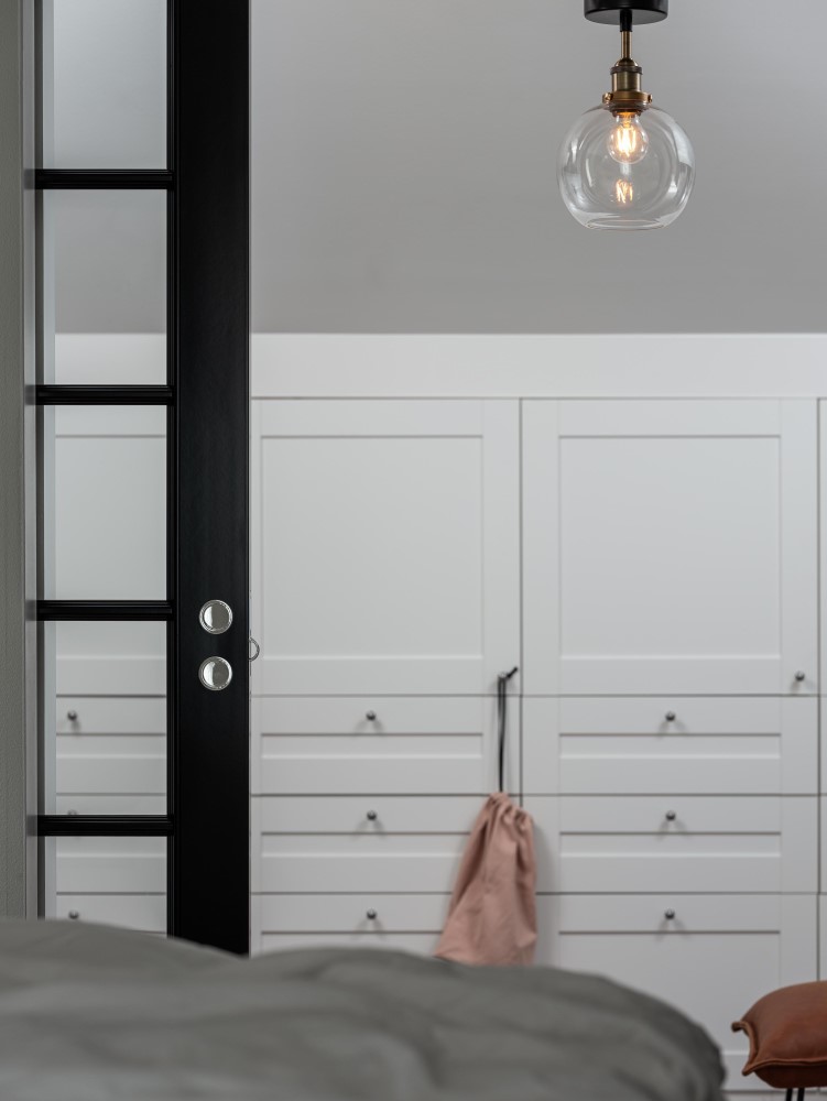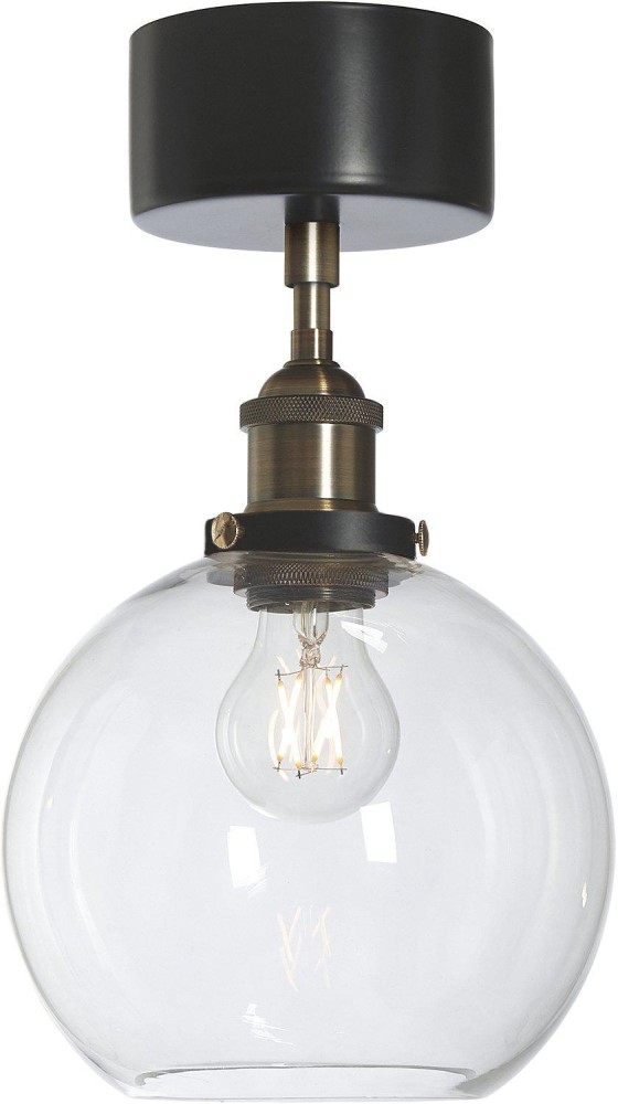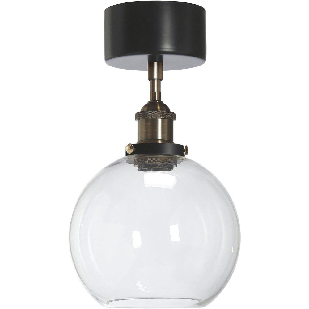 Kattovalaisin mattamustaa ja messingin väristä metallia kirkkaalla lasikuvulla. Lasikupu on käsintehty, joten yksittäisiä ilmakuplia ja pientä vaihtelua lasin paksuudessa voi esiintyä kuvussa.