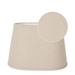 Ovaalin muotoinen lampunvarjostin napakkaa mattapintaista puuvillakangasta. Valkoinen sisäpinta ja reunusnauha.