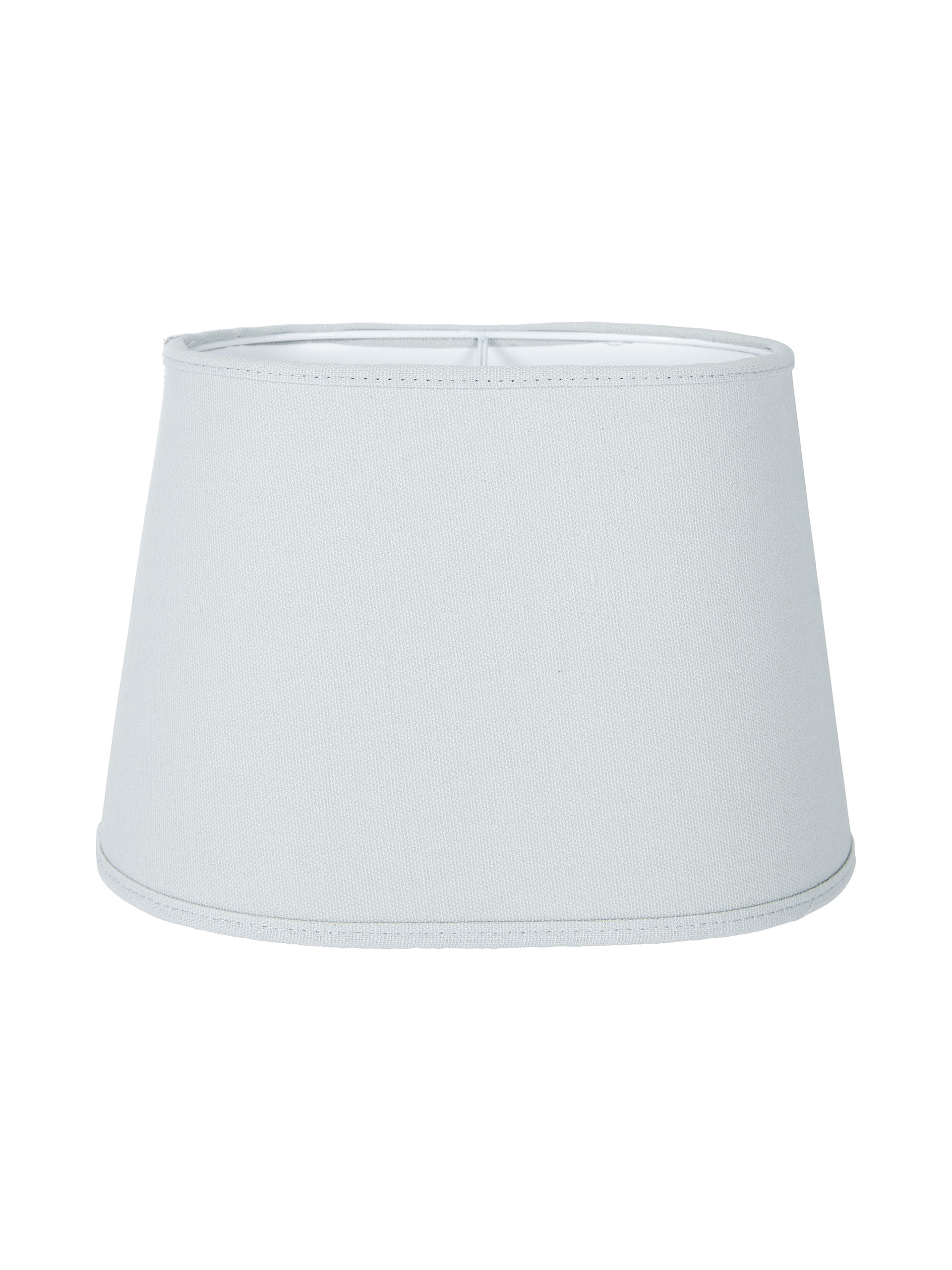 Ovaalin muotoinen lampunvarjostin napakkaa mattapintaista puuvillakangasta. Valkoinen sisäpinta ja reunusnauha.